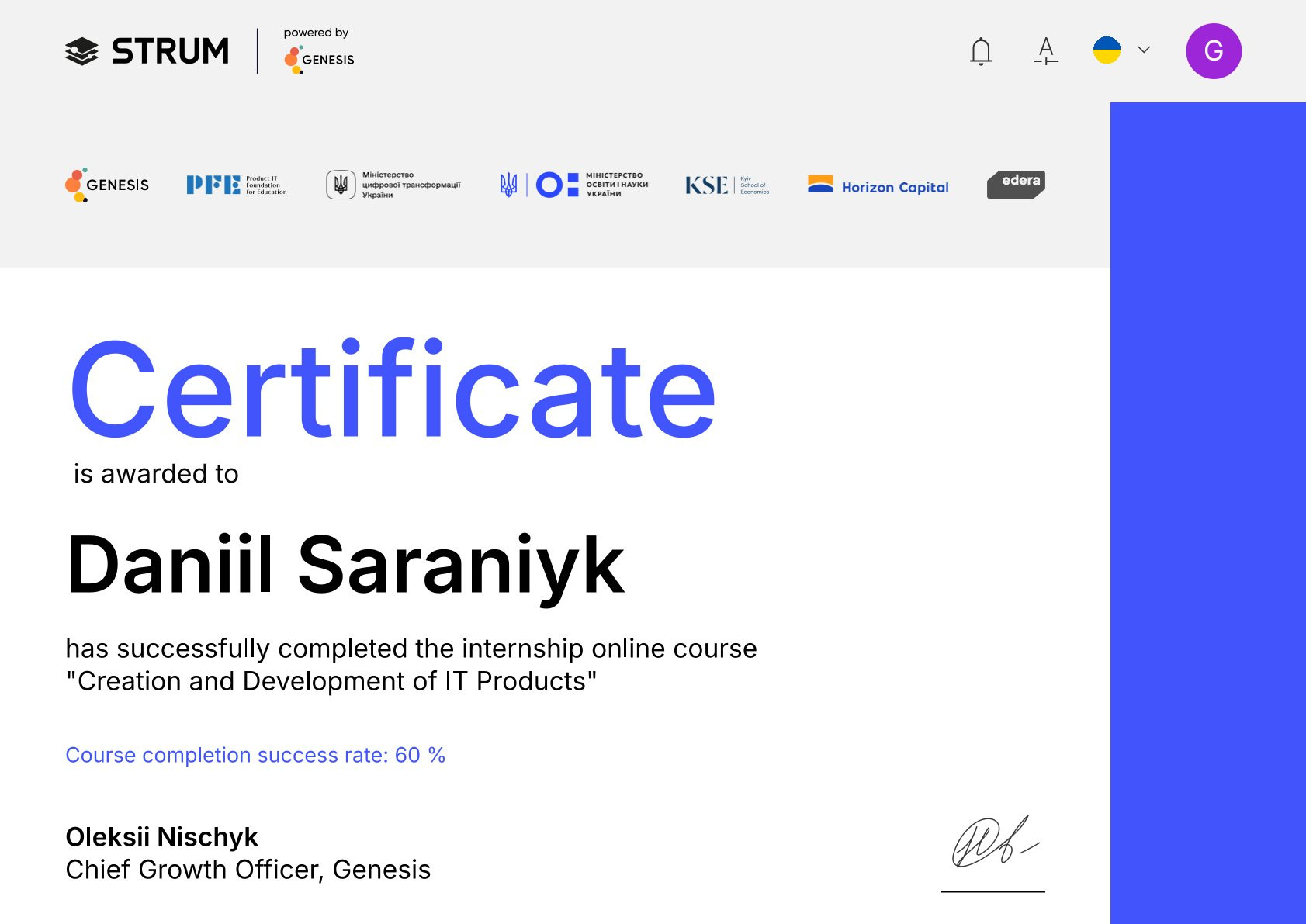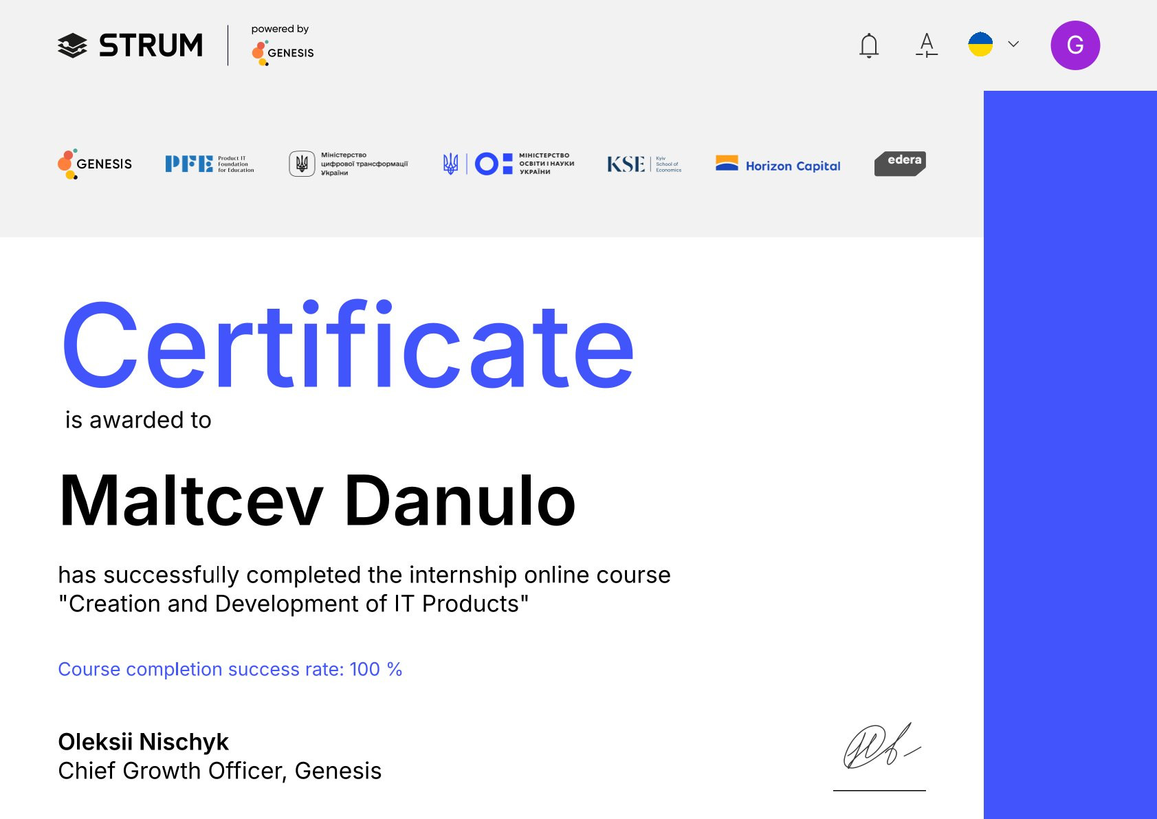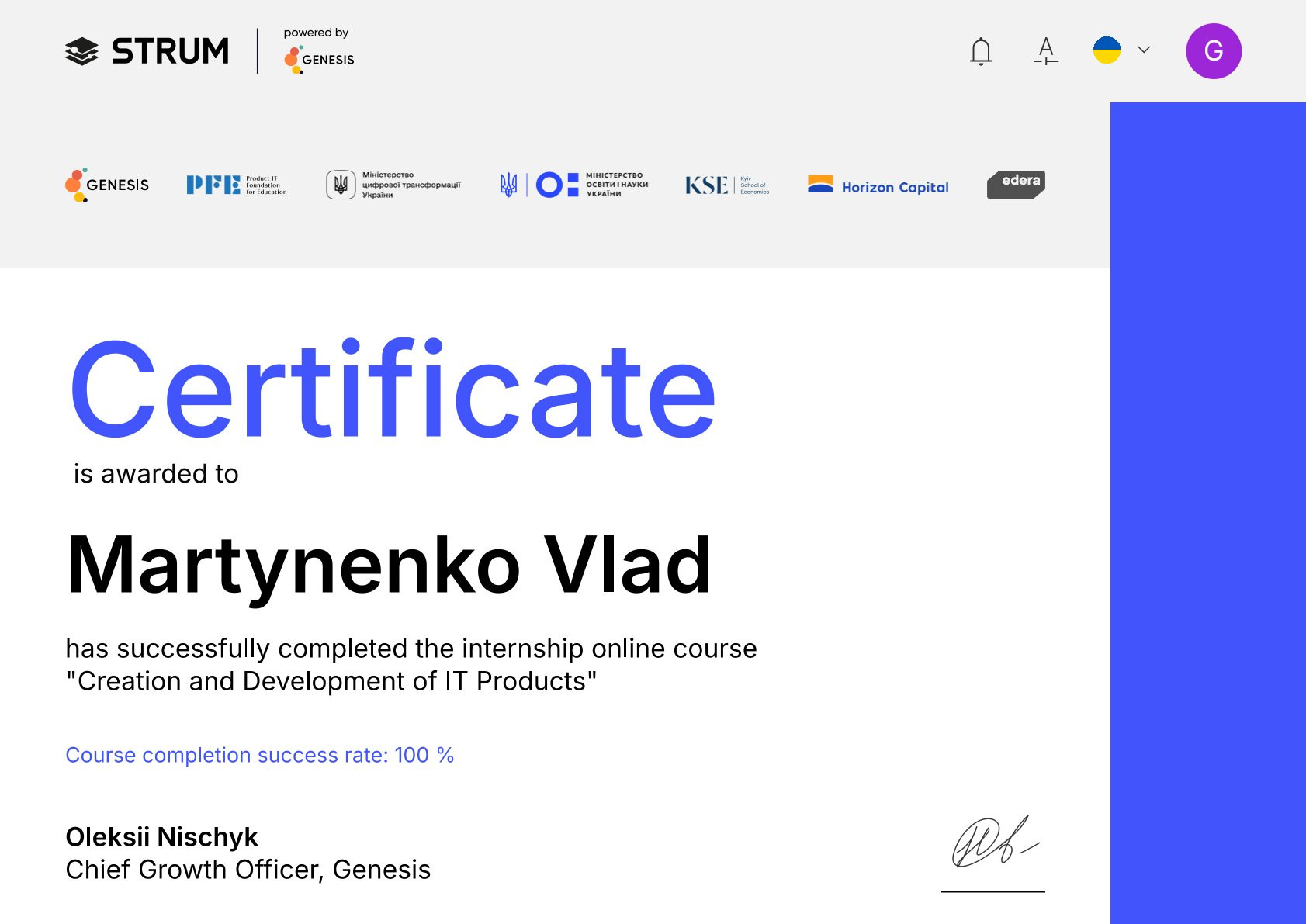 Створення та розвиток ІТ-продуктів (Strum/Genesis) |