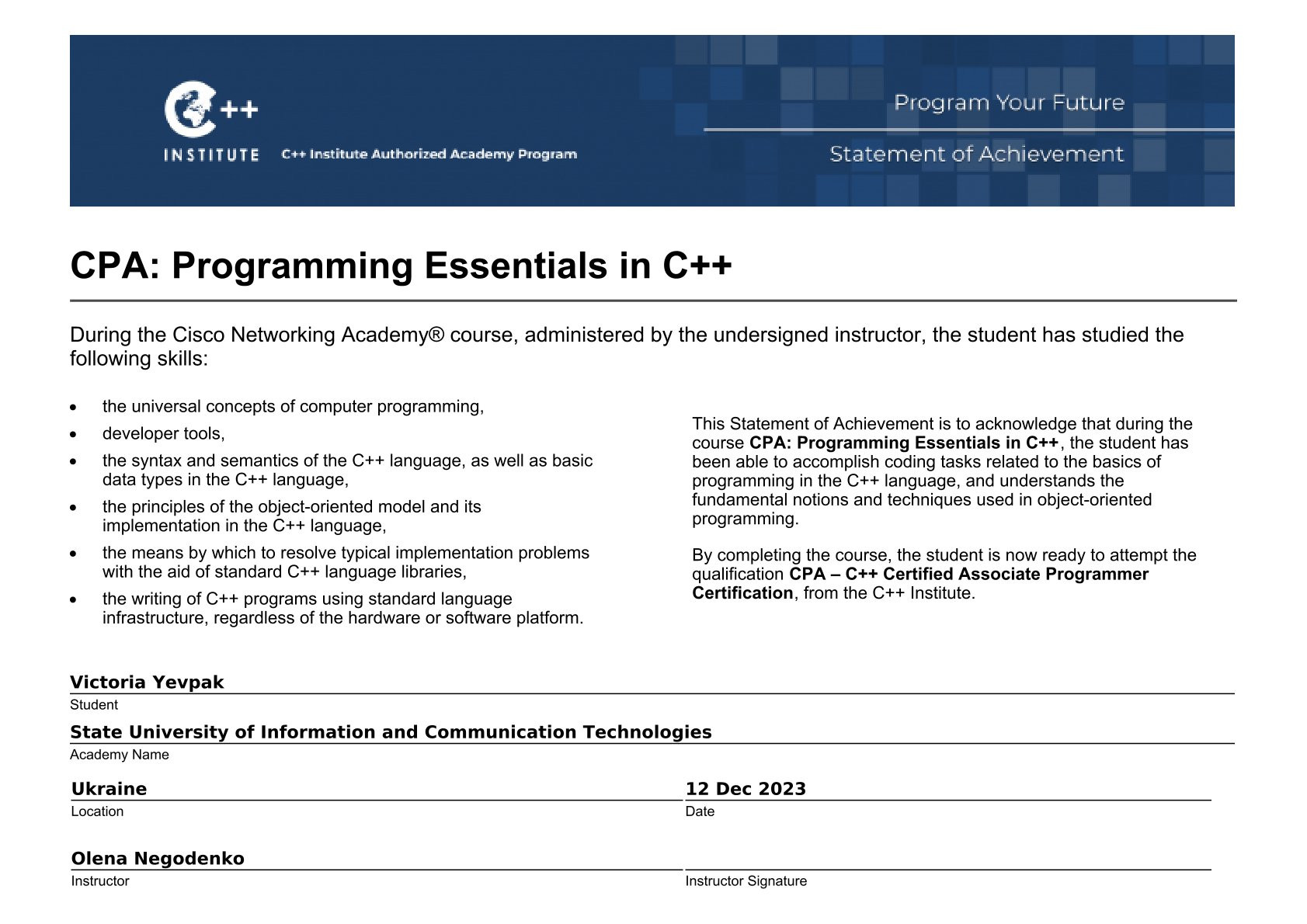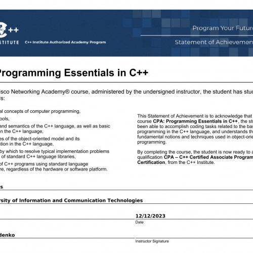 CPA: Programming Essentials in C++ (Cisco Networking Academy) |