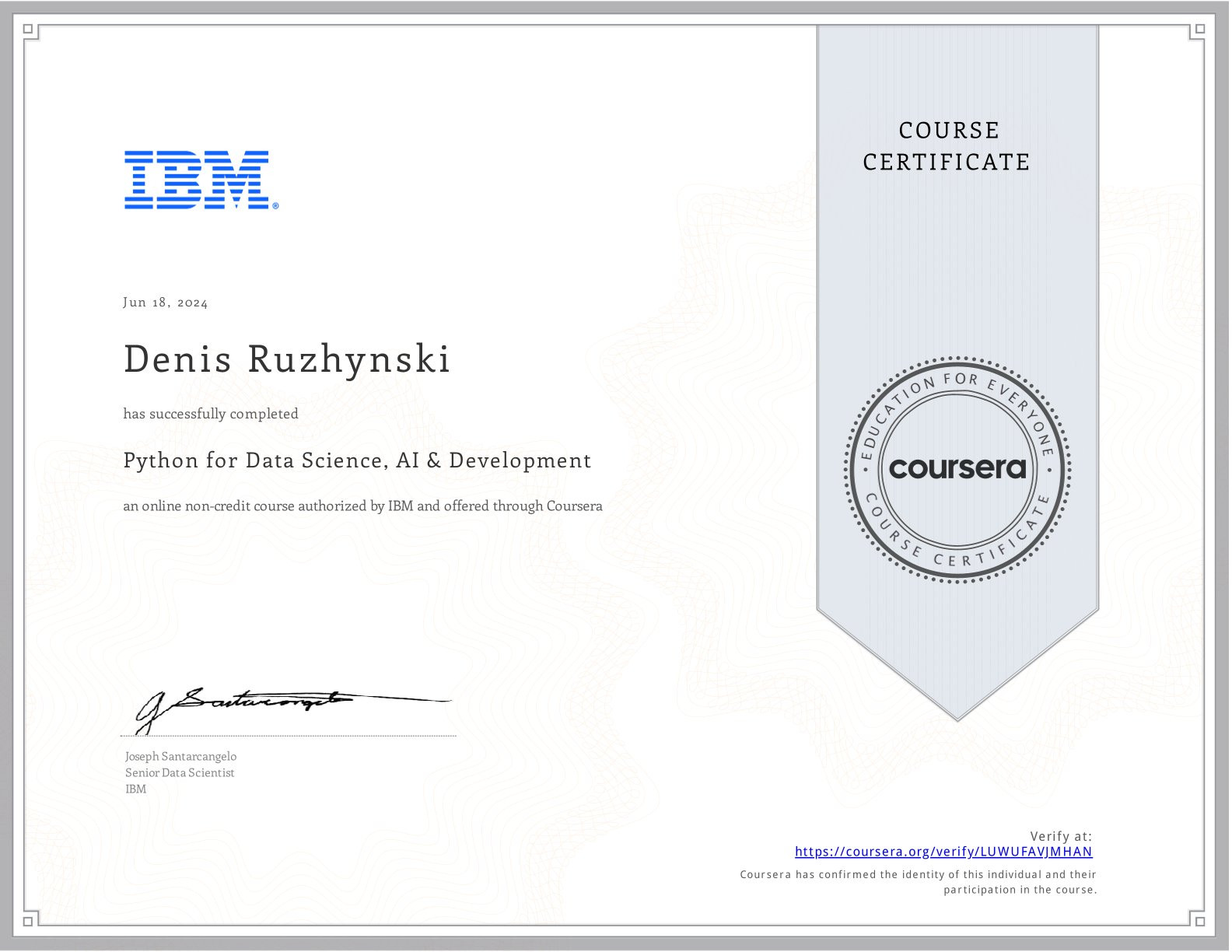 Python for Data Science, AI & Development (IBM/Coursera) |