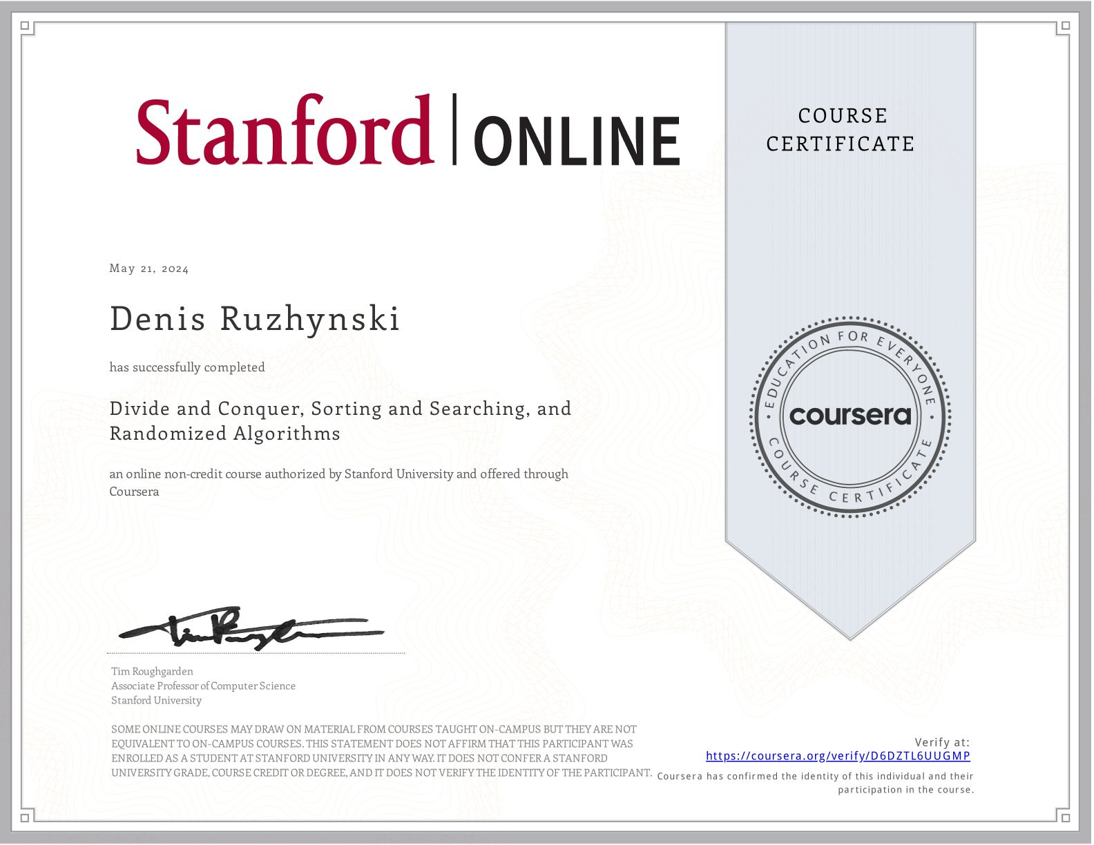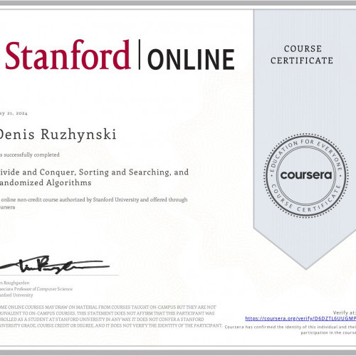 Divide and Conquer, Sorting and Searching, and Randomized Algorithms (Stanford/Coursera) |