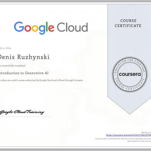 Introduction to Generative AI (Google Cloud/Coursera) |