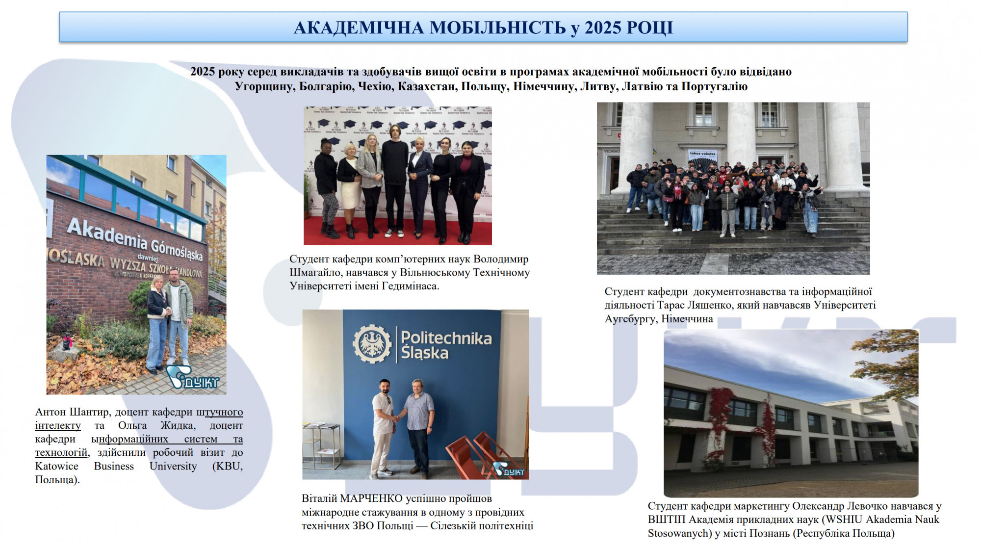 У Державному університеті інформаційно-комунікаційних технологій реалізується право учасників освітнього процесу на міжнародну та внутрішню академічну мобільність відповідно до затвердженого