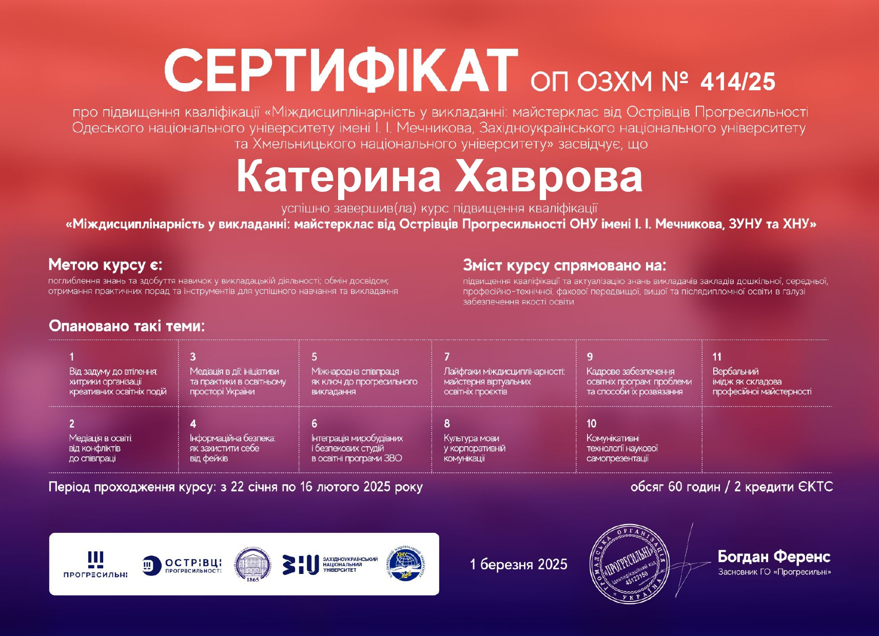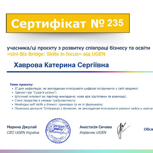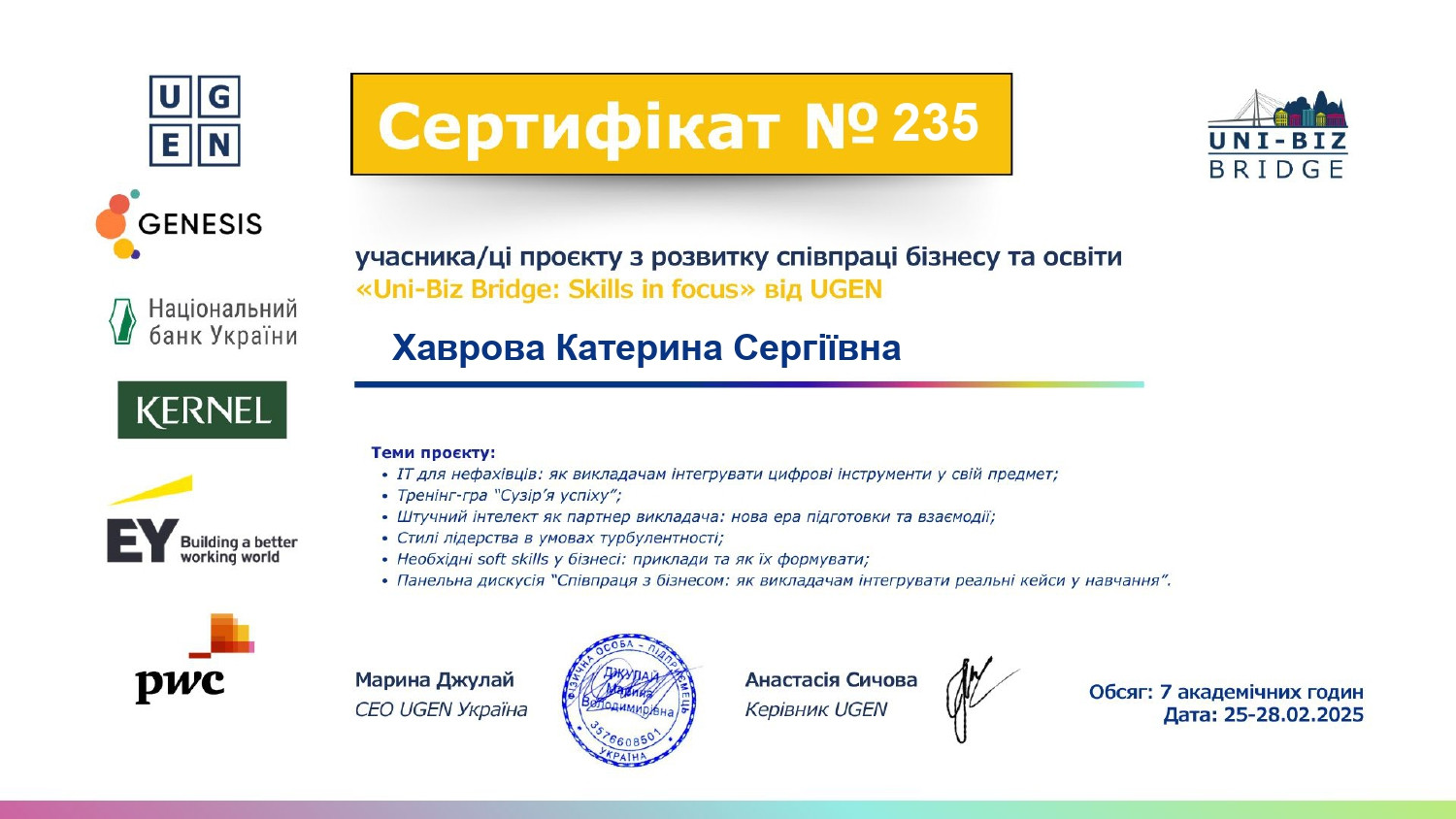 Мартиненко Марина Олександрівна доктор філософії (PhD), доцент кафедри економіки і підприємництва