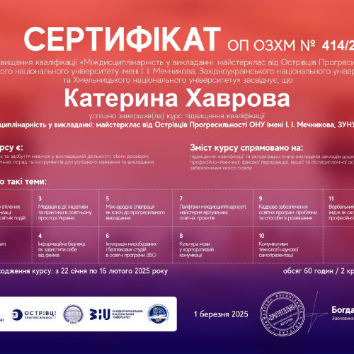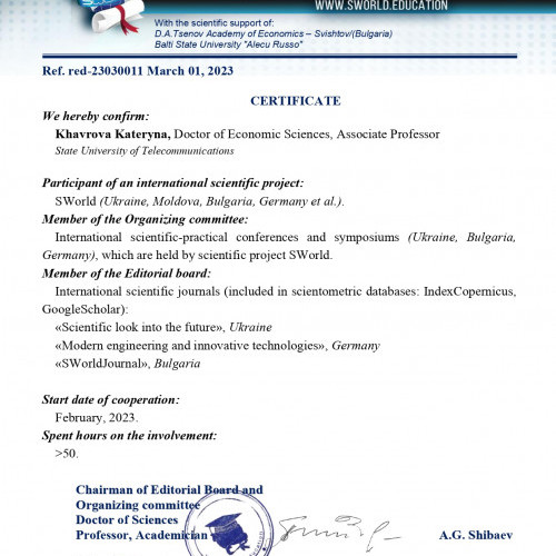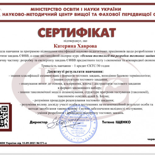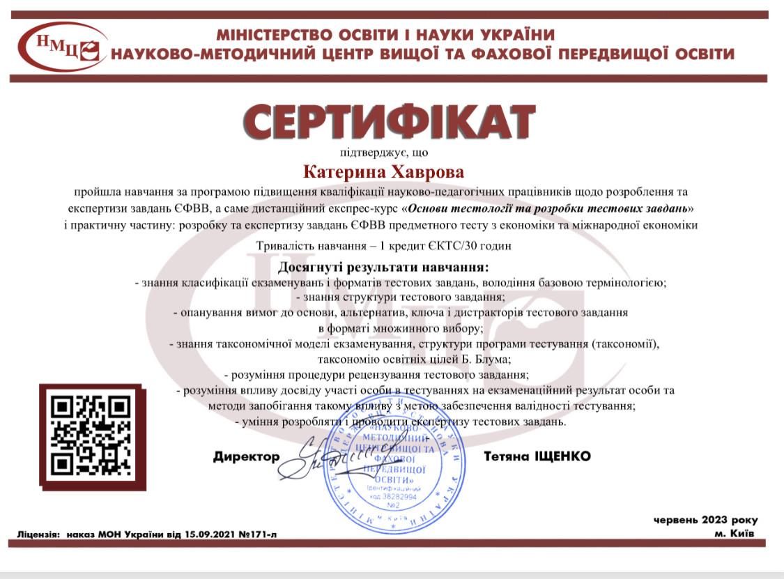 кандидат економічних наук, доцент кафедри економіки і підприємництва