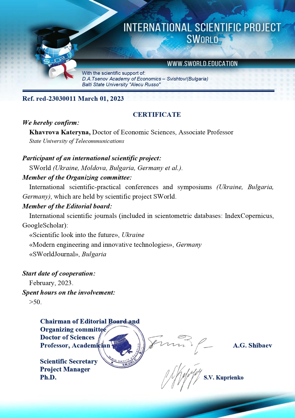 доктор економічних наук, професор кафедри економіки і підприємництва