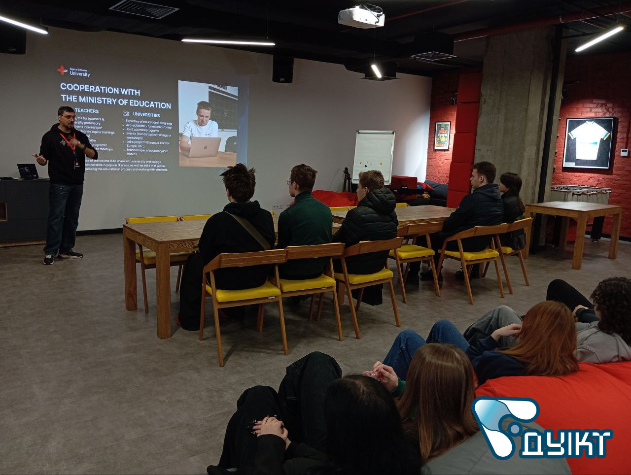 Однією з найцікавіших частин екскурсії стало спілкування зі спеціалістом компанії Володимиром Янцовим, L&D Program Manager Sigma Software, який має понад 12 років досвіду в ІТ. Студенти дізналися про важливість практики і стажувань, адже саме завдяки їм можна здобути цінний досвід і знайти своє місце в компанії.
