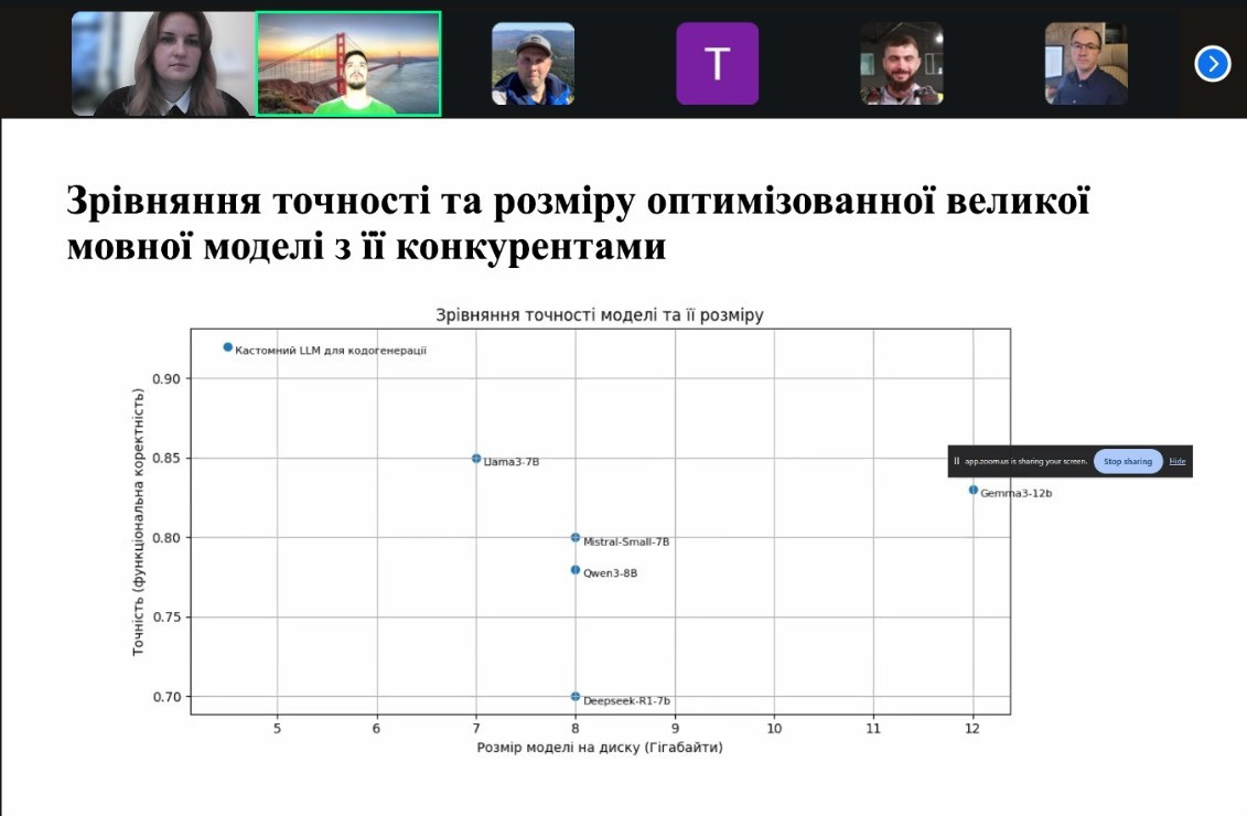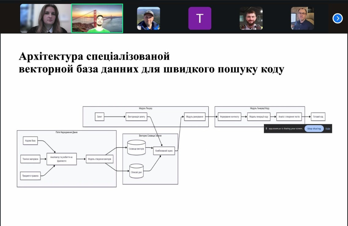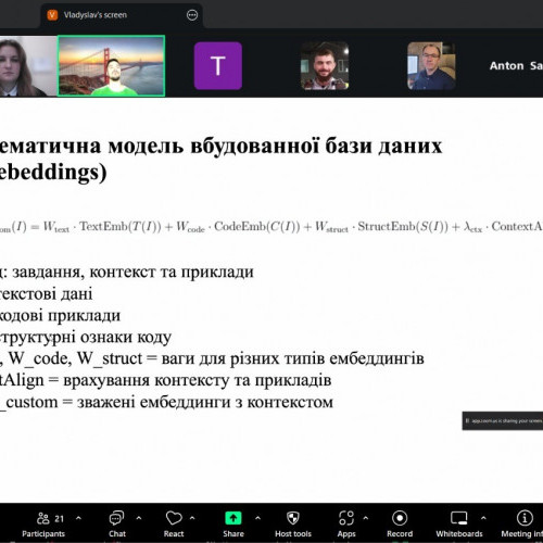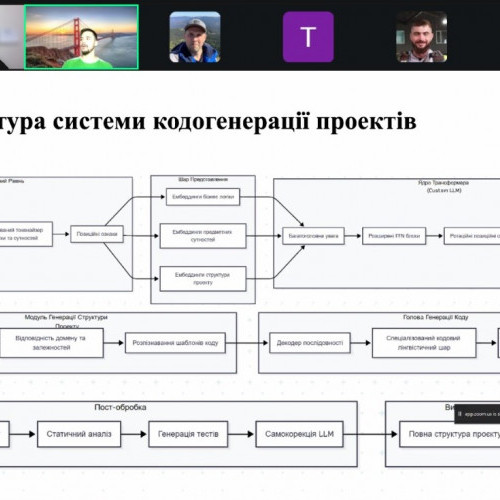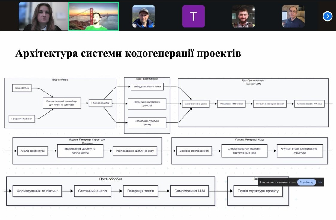 В ході семінару аспірант Владислав Миколаєнко представив наукові дослідження на тему «Метод кодогенерації проектів за допомогою алгоритмів штучного інтелекту».