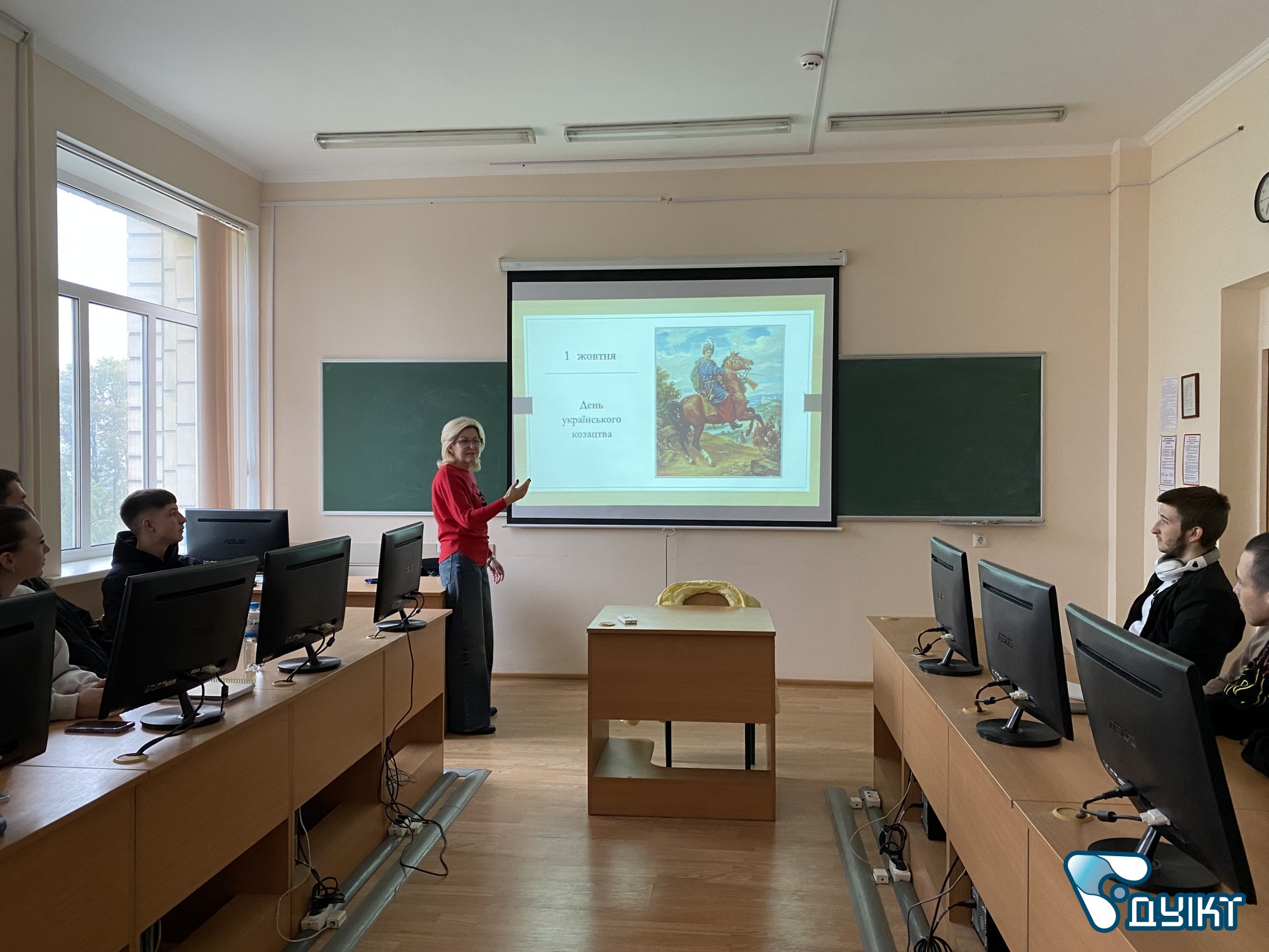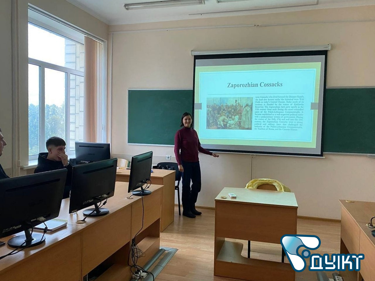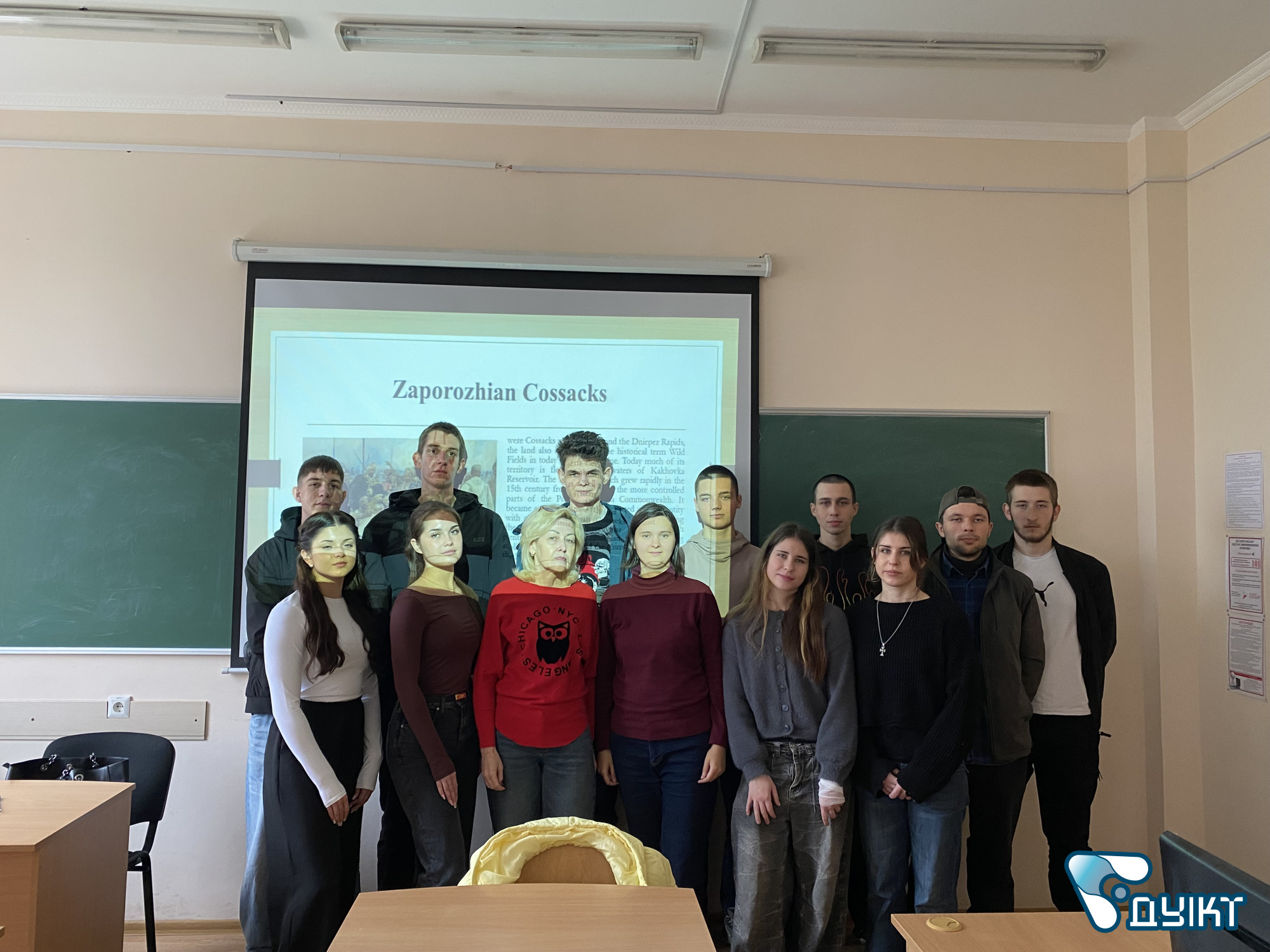 Студенти груп МТД-21 Навчально-наукового інституту телекомунікацій та ПТБД-11 Навчально-наукового інституту менеджменту і підприємництва долучилися до заходу, присвяченого Дню українського козацтва. Ознайомчу лекцію для молоді провели старші викладачі кафедри Англійської мови ННІТ – Бондар-Фурса О.С. та Бондаренко Ю.С.