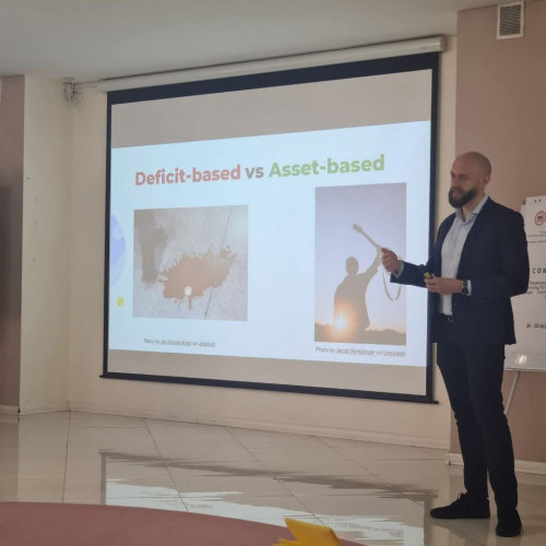 Під час другого дня конференції (25 жовтня) учасники взяли участь у низці змістовних сесій, серед яких особливу увагу привернула презентація Сергія Петренка (Київський національний університет імені Тараса Шевченка) на тему “Asset-based Approach to Assessment in ESP”. Доповідь була присвячена переосмисленню принципів оцінювання у викладанні англійської мови за професійним спрямуванням (ESP) через акцент на сильних сторонах здобувачів освіти, їхньому потенціалі та комунікативних досягненнях.