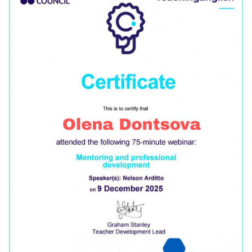 Також викладачі кафедри долучилися до вебінару «Mentoring and Professional Development», присвяченого наставництву та безперервному професійному розвитку. У межах заходу було розглянуто сучасні моделі менторингу, роль наставника в освітньому середовищі, а також інструменти розвитку лідерських і комунікативних навичок.