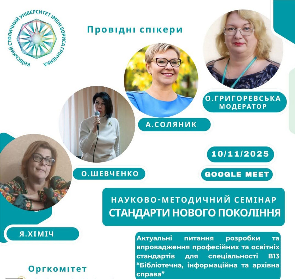 У понеділок, 10 листопада 2025 року, викладачі кафедри Документознавства та інформаційної діяльності - завідувачка кафедри Тетяна Сидоренко, професор Леся Ковальська та доцент Олена Карпенко - долучилися до науково-методичного семінару «Стандарти нового покоління».