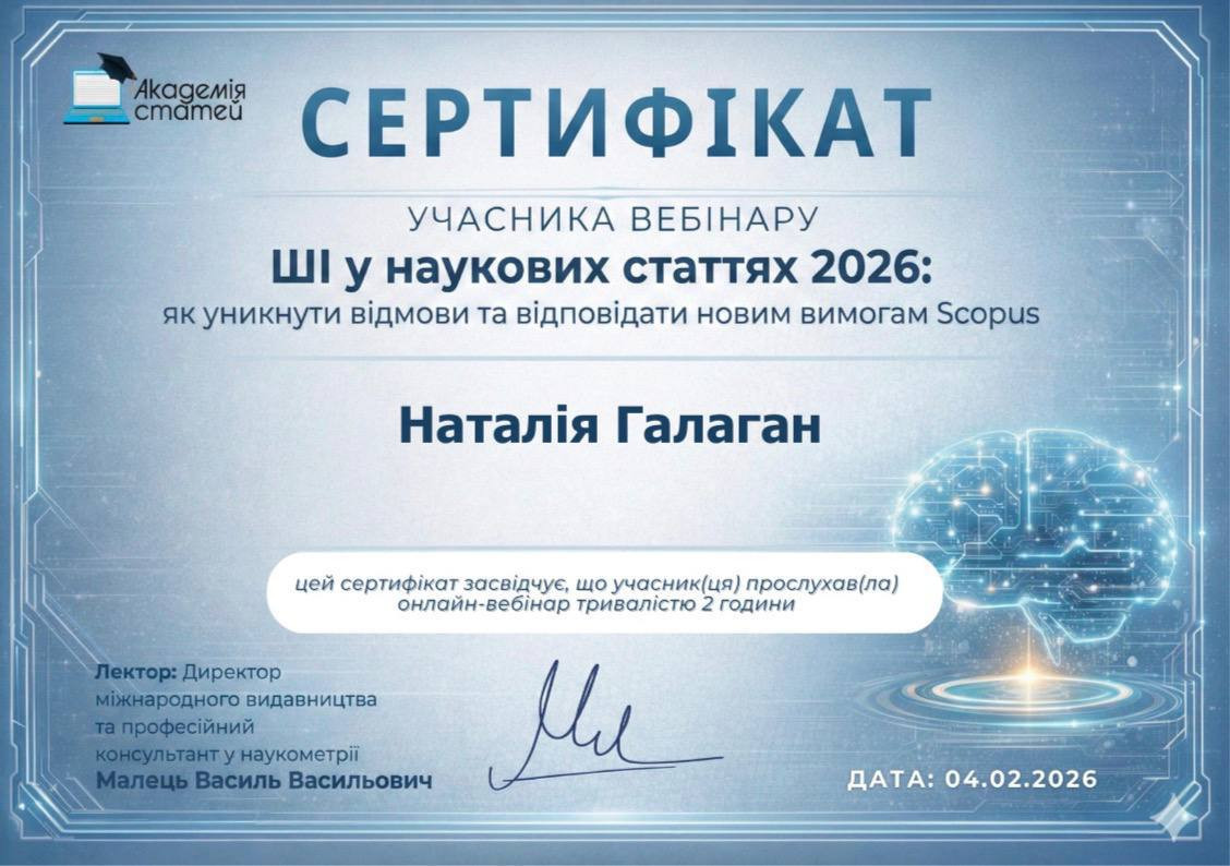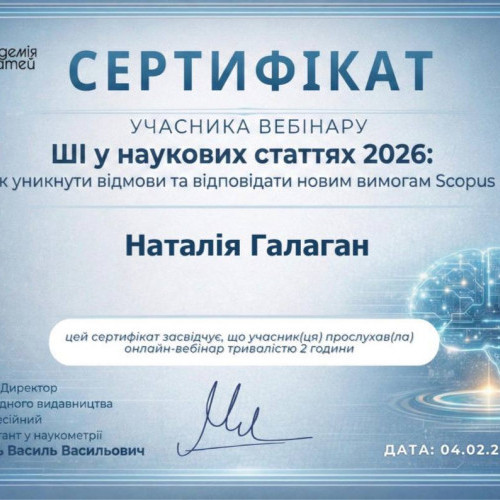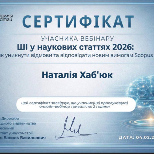 «Участь наших викладачів у вебінарі з питань використання штучного інтелекту в наукових публікаціях є важливим кроком до підвищення якості досліджень та відповідності міжнародним стандартам. Сьогодні надзвичайно важливо не лише володіти сучасними цифровими інструментами, а й відповідально та доброчесно застосовувати їх у науковій діяльності. Отримані знання допоможуть нашим науковцям успішно готувати публікації відповідно до вимог 2026 року та гідно представляти результати роботи кафедри у провідних міжнародних виданнях».