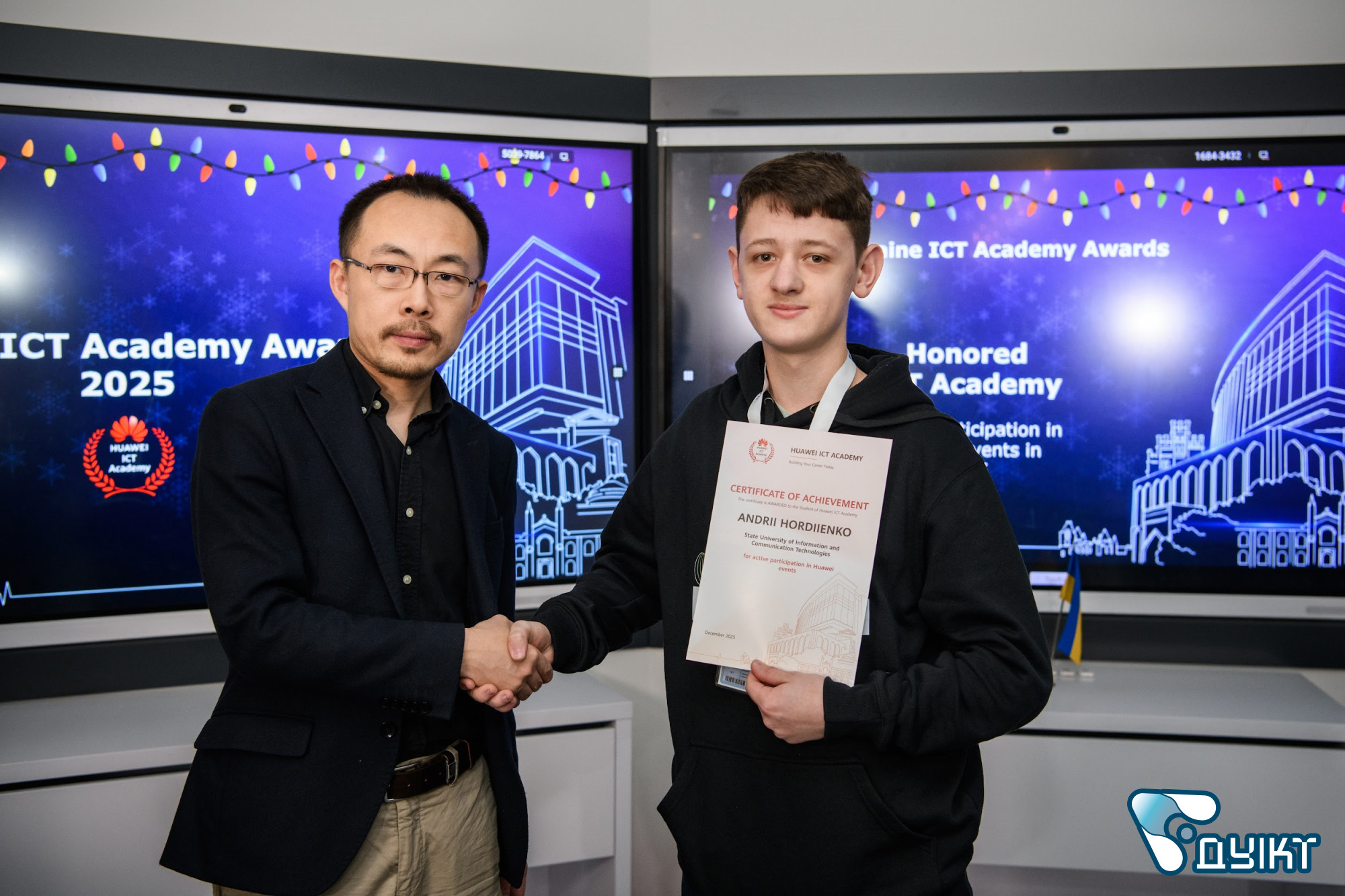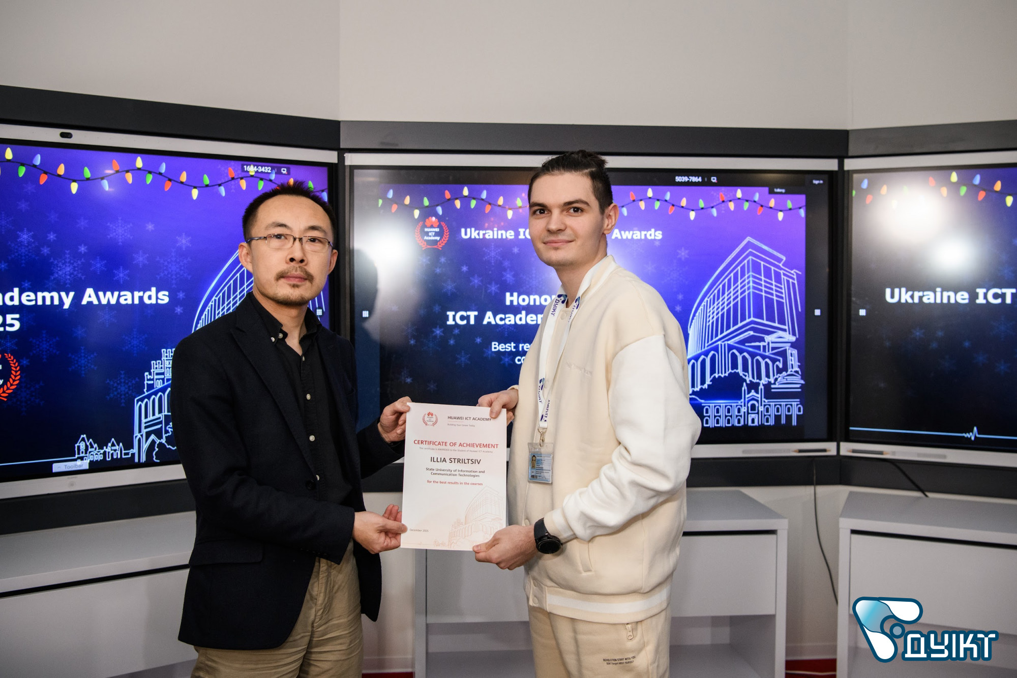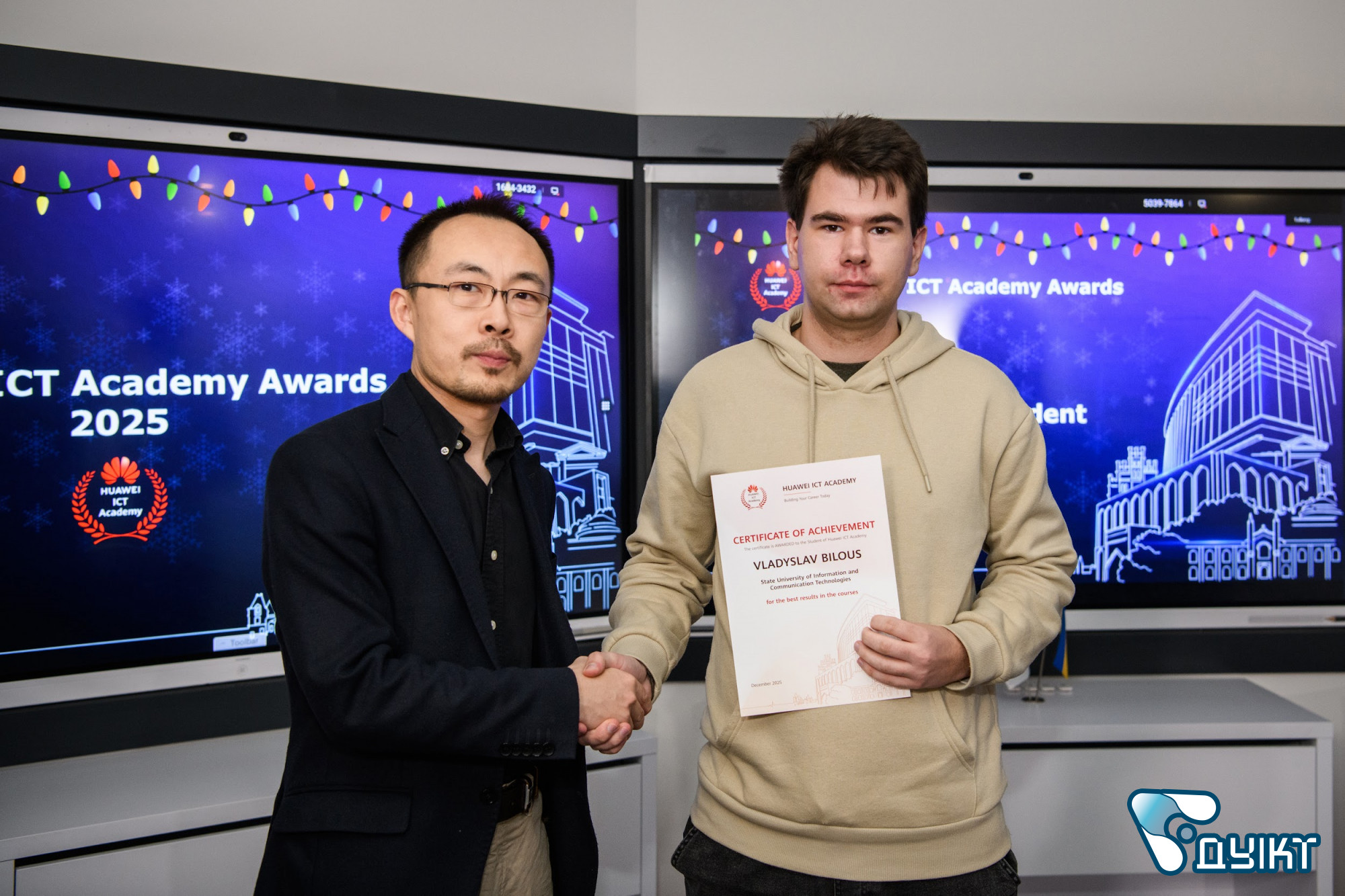 За підсумками 2025 року високі результати продемонстрували саме здобувачі освіти ДУІКТ. Студенти були відзначені за активну участь у заходах Huawei ICT Academy, найкращі результати навчання, тривалу та наполегливу роботу на освітній платформі. Ці досягнення підтверджують високу мотивацію студентської спільноти та її готовність до професійних викликів сучасного ІКТ-ринку.