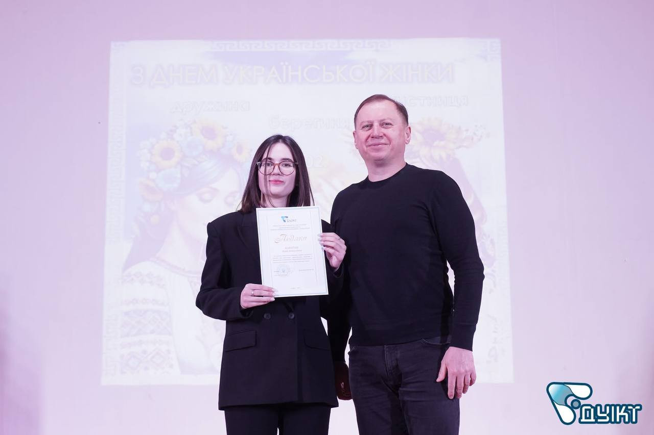 26 лютого ректор Державного університету інформаційно-комунікаційних технологій Володимир Шульга урочисто вручив Подяку студентці четвертого курсу спеціальності 126 Інформаційні системи та технології Марії Капітон.