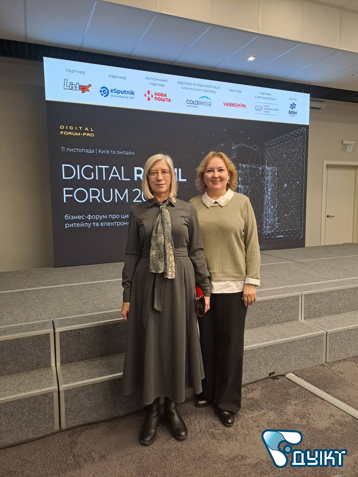 Викладачі ДУІКТ  - завідувач кафедри Маркетингу Олена Виноградова та професор кафедри Тетяна Сьомкіна, 11 листопада 2025 року взяли активну участь у Digital Retail Forum 2025 — ключовій галузевій події, присвяченій цифровізації ритейлу та електронної комерції в Україні. Цей форум став потужною платформою для обговорення технологій, трендів і рішень, які сьогодні трансформують торгівлю в умовах швидких змін. Участь викладачів кафедри маркетингу у Форумі була спрямована на те, щоб інтегрувати передові знання та практичні кейси безпосередньо у навчальний процес, забезпечуючи студентам-маркетологам найбільш релевантну та конкурентну освіту.