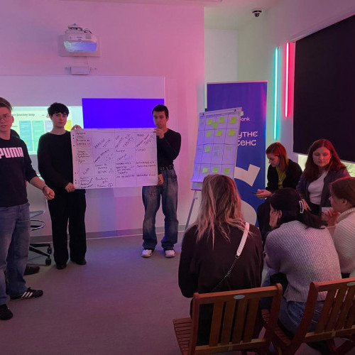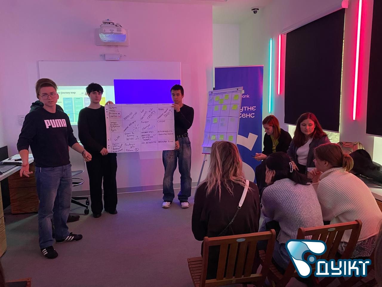 Учасники працювали над завданнями в міні-групах, створювали Customer Journey для нового пакету послуг для студентства, аналізували успішні та невдалі сценарії.