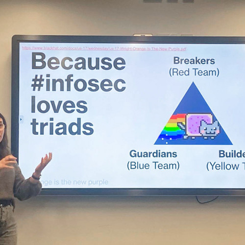 У межах навчань Бригинець Анастасія виступила з доповіддю, присвяченою практичним аспектам навчання тестування на проникнення, зокрема використанню навчальних середовищ та формуванню практичних навичок етичного хакінгу в процесі підготовки майбутніх фахівців з кібербезпеки.