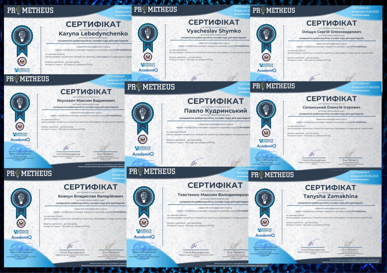 За результатами проходження курсу «Академічна доброчесність» здобувачі отримали сертифікати, які є підтвердженням їх обізнаності з основними принципами академічної етики та готовності дотримуватися високих стандартів доброчесної поведінки в освітньому процесі.