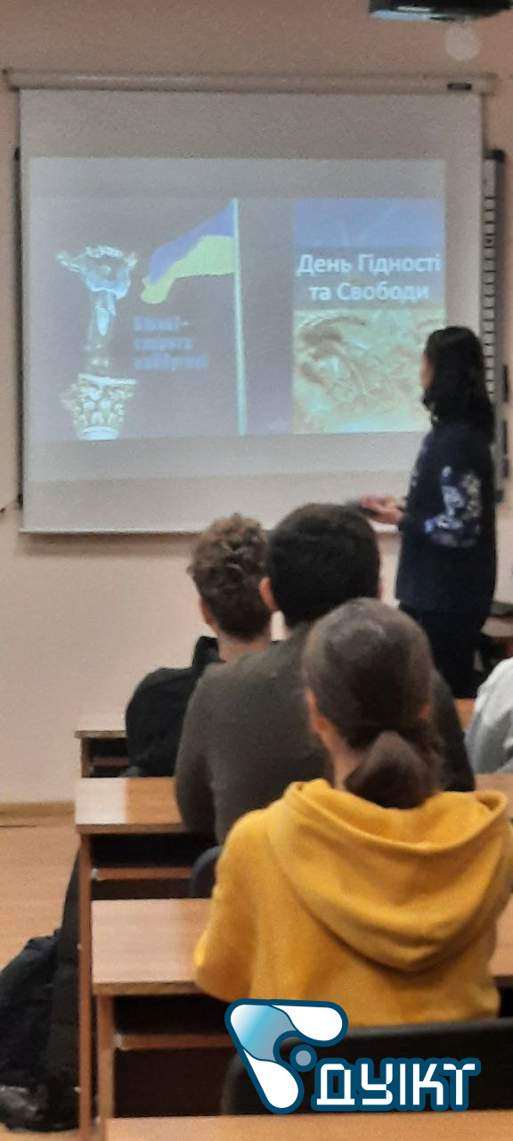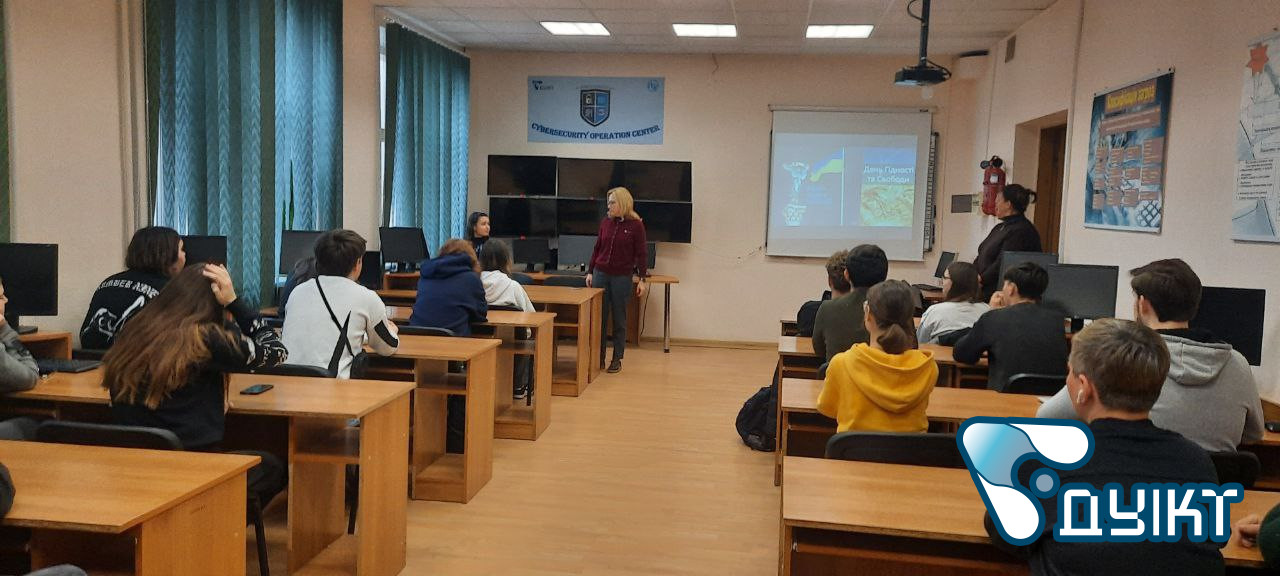 До Дня Гідності та Свободи в Навчально-науковому інституті кібербезпеки та захисту інформації було проведено тематичний захід, спрямований на вшанування подій, що стали ключовими у боротьбі українського народу за свободу, демократію та європейський шлях розвитку.