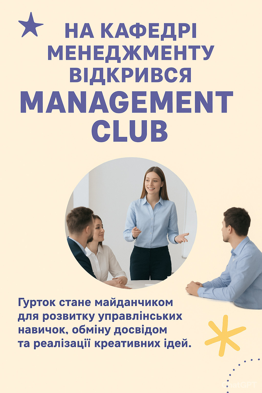 Management Club відкриває перед студентами нові перспективи — від участі в квестах і кейс-чемпіонатах до розробки власних стартап-ідей. Клуб стане осередком ініціативної молоді, яка прагне реалізувати свій потенціал у сфері управління.