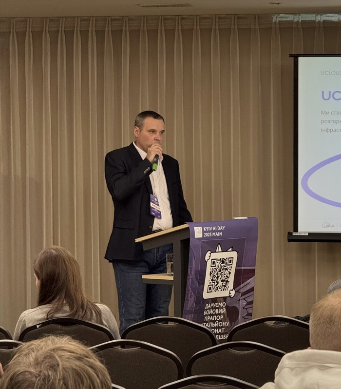 Старший викладач кафедри Менеджменту, операційний директор компанії UCloud Сергій Колесниченко разом із студентом 4-го курсу Іваном Шандрополем відвідали виставку Kyiv AI days, яка була присвячена машинному навчанню, розробці інструментів штучного інтелекту та впровадженні таких інструментів в бізнесі.