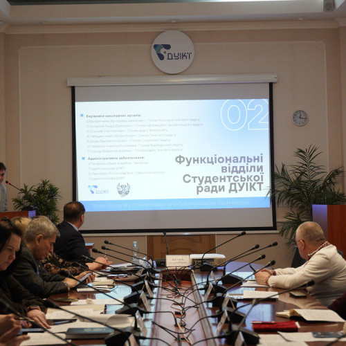У вівторок, 17 лютого відбулося чергове засідання Вченої ради Державного університету інформаційно-комунікаційних технологій. Одним із ключових питань порядку денного став звіт Голови Студентської ради університету Демида Тітенка про діяльність Органів студентського самоврядування (ОСС) у 2025 році.