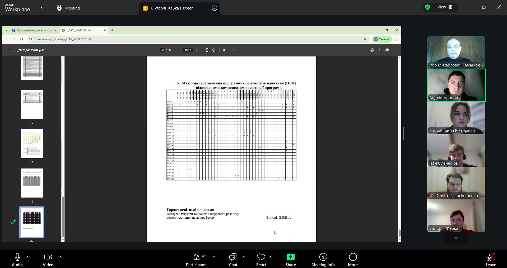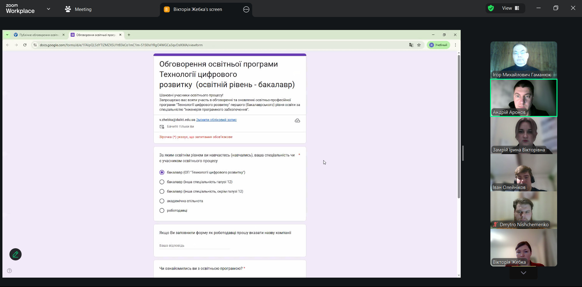 У засіданні взяли участь науково-педагогічні працівники кафедри, представники здобувачів освіти різних рівнів, а також широка академічна й професійна спільнота. До обговорення долучилися представники провідних закладів вищої освіти України – Київського столичного університету імені Бориса Грінченка, Київського національного університету імені Тараса Шевченка, Національного транспортного університету що забезпечило фахову експертизу та міжуніверситетський обмін досвідом.
