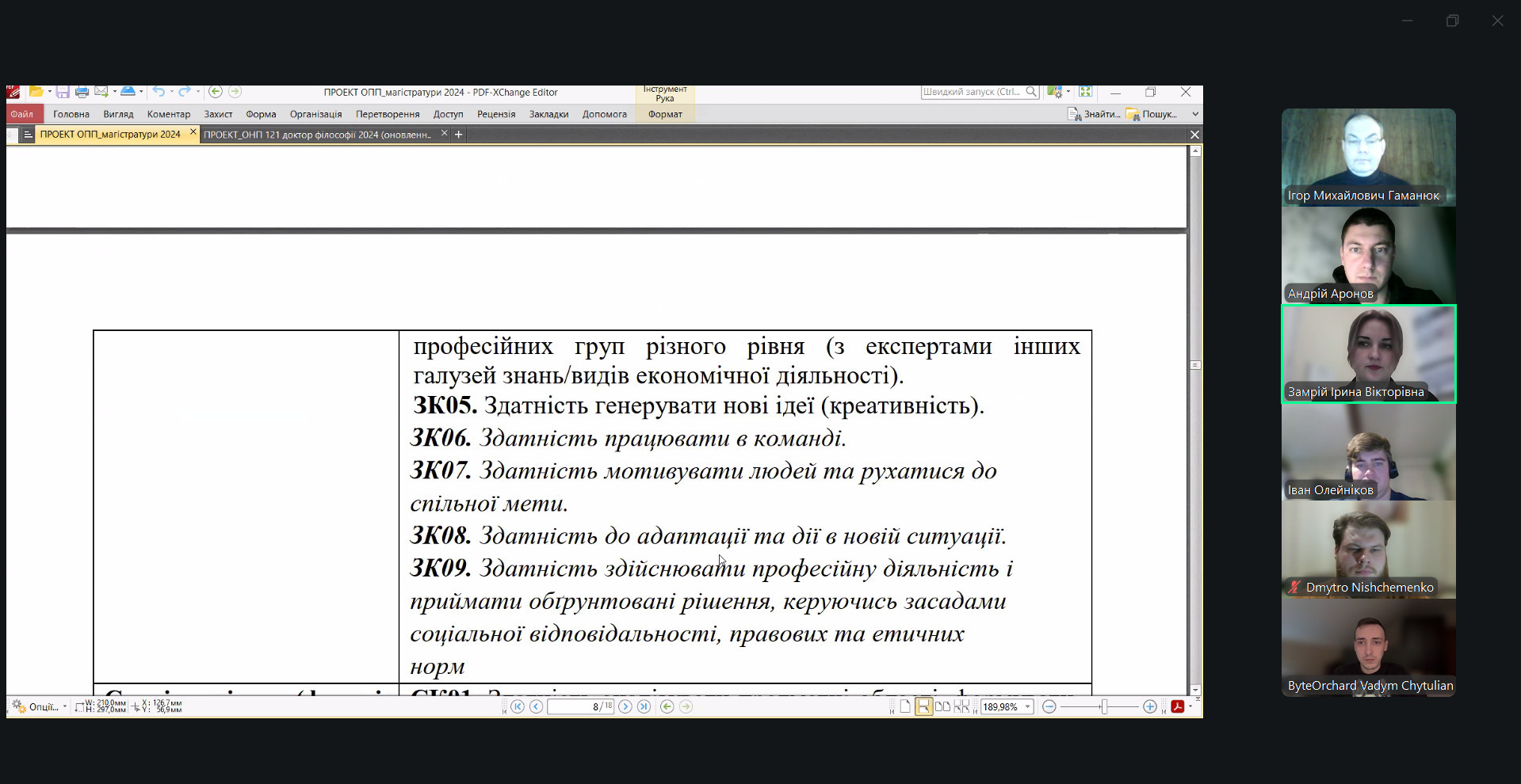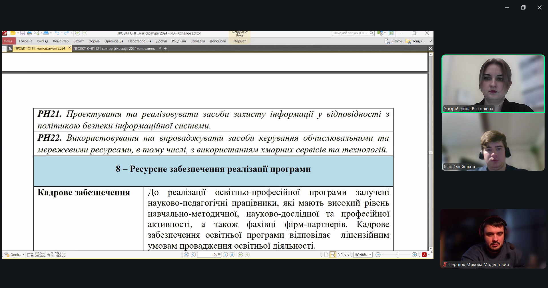 Під час обговорення було розглянуто актуальність і збалансованість змісту освітніх компонентів, відповідність програм сучасним тенденціям розвитку цифрових технологій і програмної інженерії, послідовність формування результатів навчання між рівнями освіти, а також інтеграцію практикоорієнтованих модулів, індустріальних кейсів і сучасних інструментів розробки. Окрему увагу приділено наступності бакалаврських, магістерських і PhD-програм, розвитку дослідницьких компетентностей та можливостям залучення здобувачів до спільних проєктів із бізнесом і науковими установами.