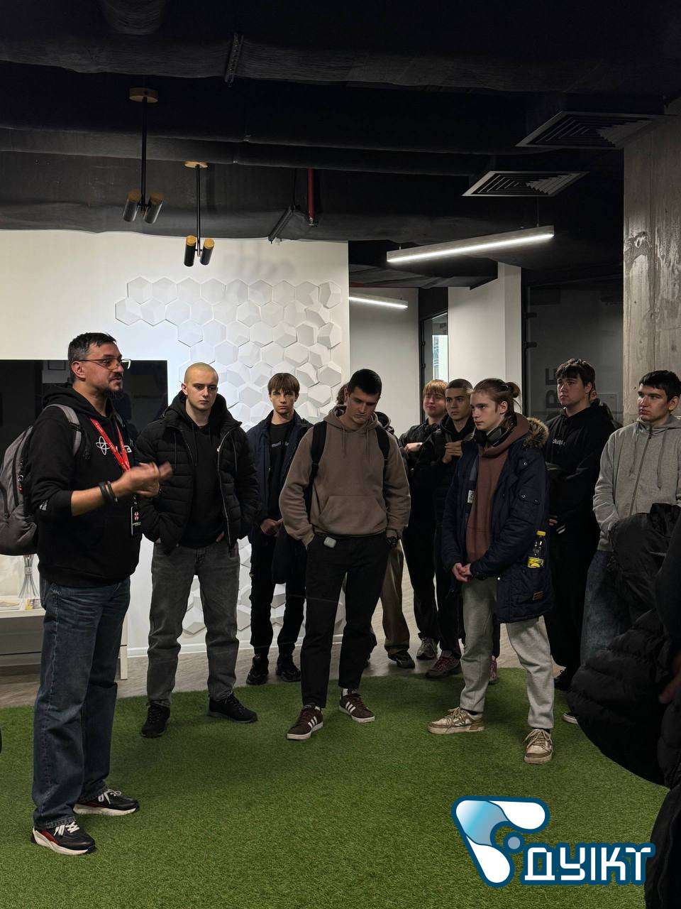 Під час візиту здобувачі мали змогу ознайомитися з матеріальною базою компанії, побачити сучасні робочі простори, лабораторії та зони для командної роботи, а також дізнатися про організацію внутрішніх процесів у великій ІТ-команді.
