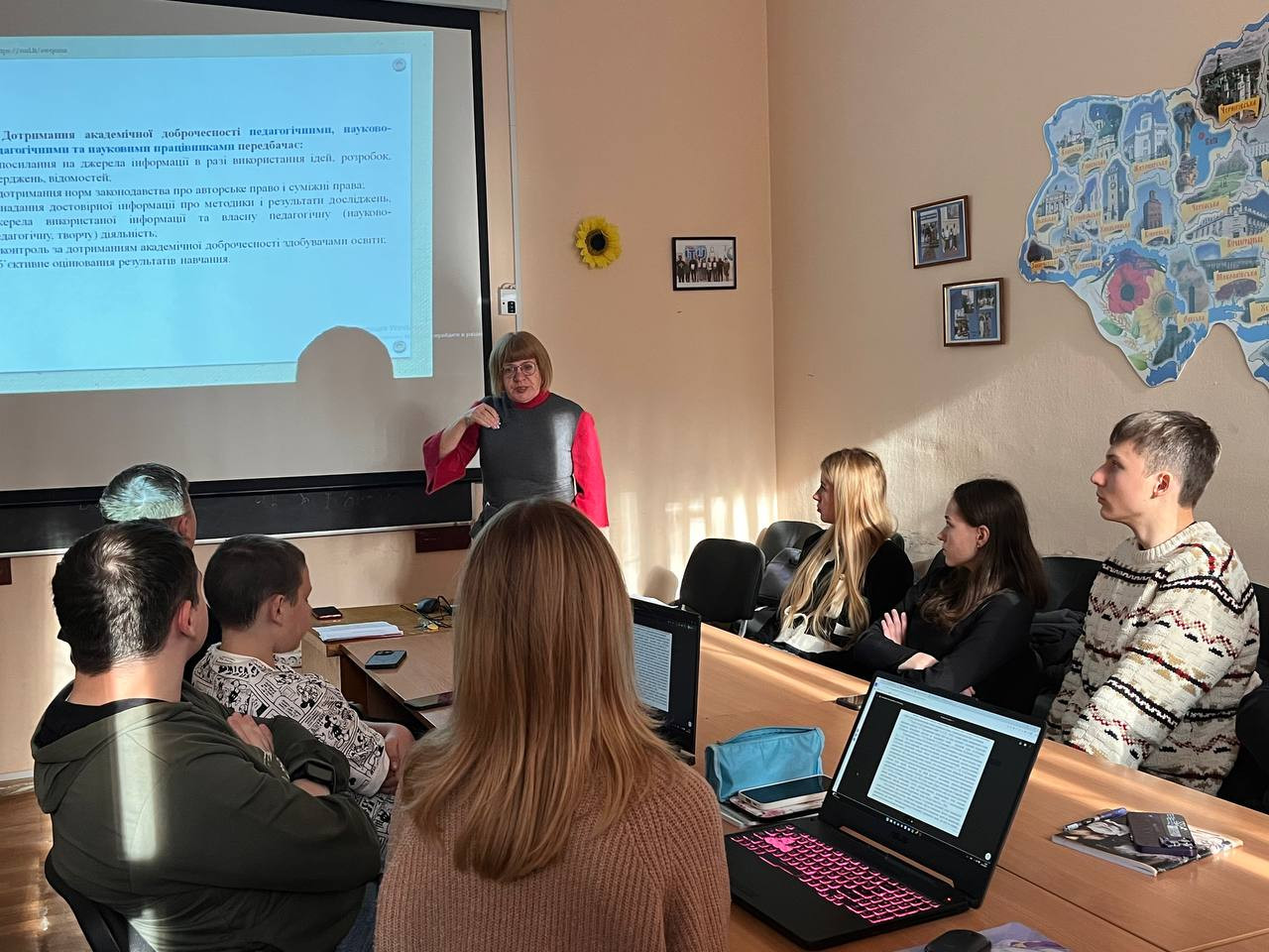 Під час зустрічі обговорювали, чому чесність у навчанні є основою успішної освіти та професійного становлення. Академічна доброчесність - це не лише відсутність плагіату чи списування, а передусім повага до власної праці, до викладачів і до знань, які ми здобуваємо щодня.