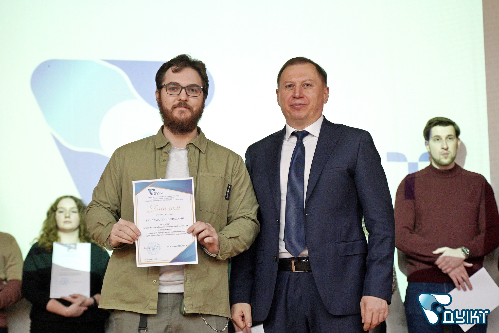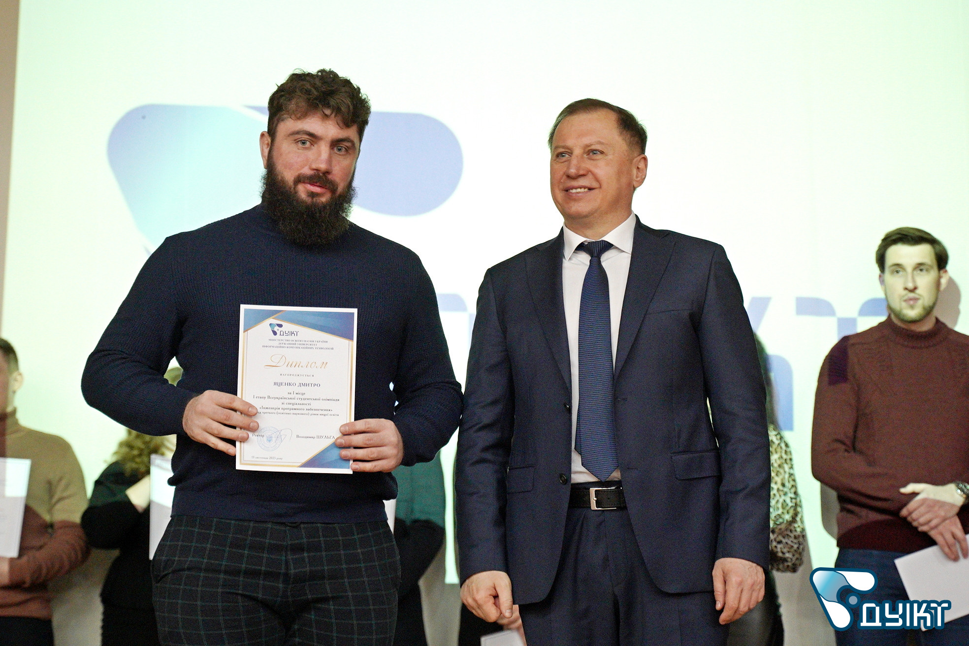 У вівторок, 16 грудня 2025 року ректор Державного університету інформаційно-комунікаційних технологій Володимир Шульга урочисто вручив дипломи переможцям І етапу Всеукраїнської студентської олімпіади з програмування за спеціальністю «Інженерія програмного забезпечення».