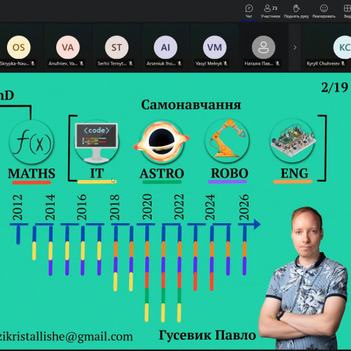 Також з доповіддю виступив Павло Гусевик — доктор філософії (PhD) з фізики, науковий керівник учнівських інженерних проєктів, який презентував тему «Як створити центр науки у школі або досвід підготовки переможців Олімпіади Геніїв».
