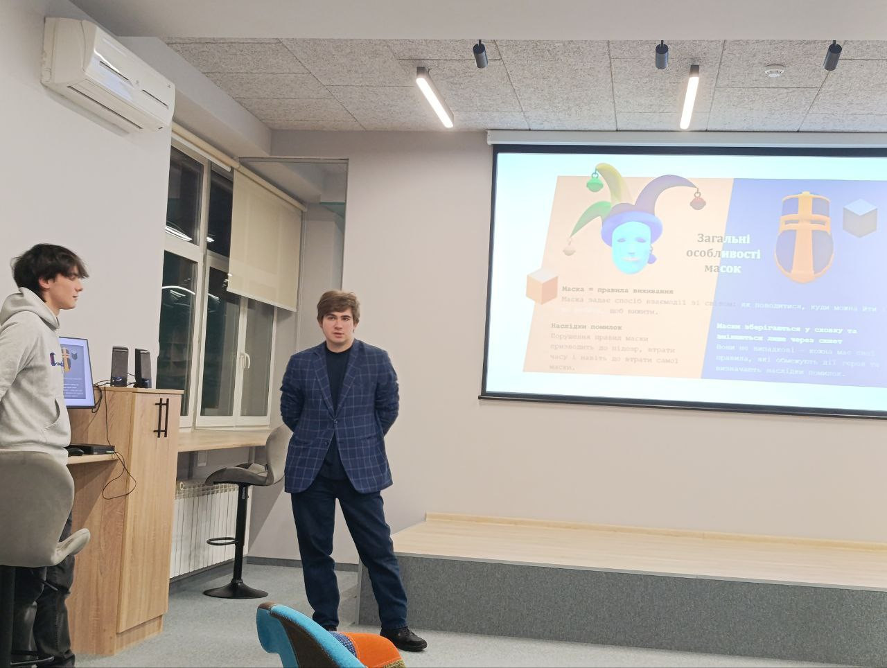 «Завдання було зробити проект на тему Маска, на перший же день ми зібралися усі разом і кожен виклав що він розуміє під словом Маска. Слово за слово і вже з'являлися ідеї по проектам. Які обговорювалися публічно. Після години чи двох обговорення, кожен представлявся і розказував у чому його сильна та слабка сторона, і на фоні цього формувалися команди та залучалися люди. Потім усі пішли і почався тиждень розробки. У п'ятницю всіх охочих запросили на локацію (через часті відключення), хто хотів приходив на локацію, говорив і розробляв, показував що в нього готово та питав про проблеми та їхнє вирішення. Було цікаво. І вже аж до презентації всі були зайняті розробкою ігор.