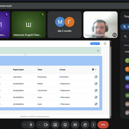 Під час практики здобувачі освіти презентували версію MVP інформаційної системи менеджменту заявок щодо недоладок у гуртожитку, продемонструвавши навички аналізу вимог, проєктування архітектури та реалізації функціоналу. Представники компанії надали фахові рекомендації щодо вдосконалення системи та масштабування рішення.