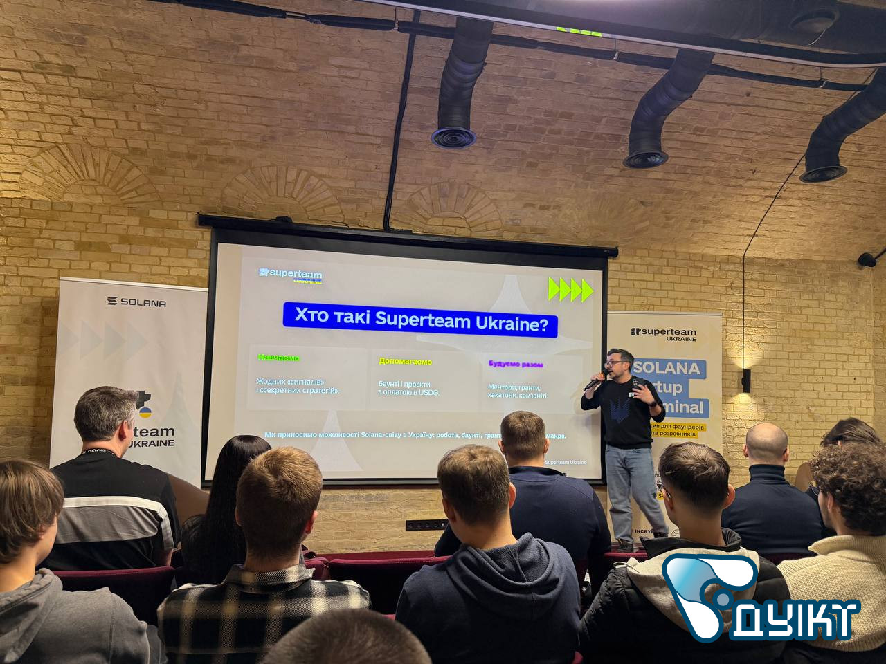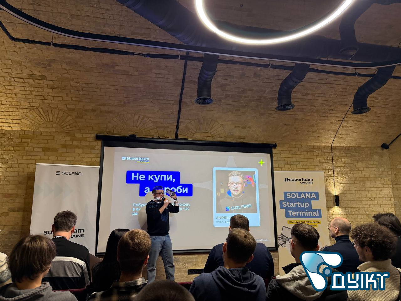 Під час заходу учасники ознайомилися з сучасними тенденціями створення технологічних стартапів та шляхом розвитку від студента до засновника власного проєкту. Значну увагу було приділено можливостям побудови цифрових продуктів на базі екосистеми Solana, яка активно використовується для створення децентралізованих застосунків, Web3-сервісів та інноваційних цифрових платформ.