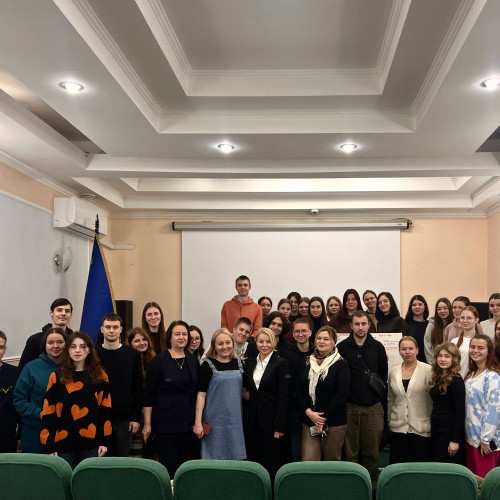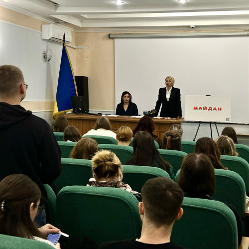 Під час лекції-зустрічі студенти згадали, як 21 листопада 2013 року, після рішення уряду призупинити підготовку до підписання Угоди про асоціацію з ЄС, молодь вийшла на мирний протест, що став початком масштабного руху за свободу та європейський вибір України.