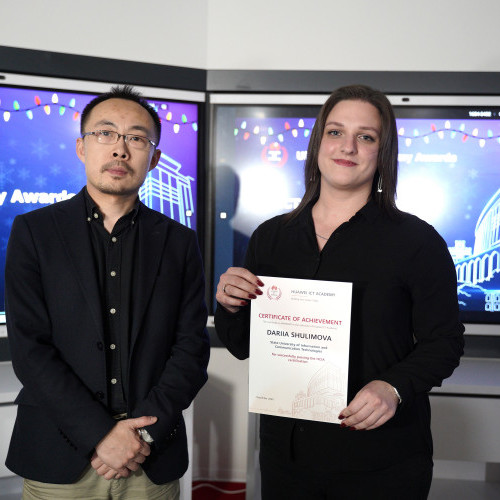 Високі результати продемонстрували й студенти ДУІКТ, які були відзначені за активну участь у програмах Huawei ICT Academy та успішне проходження курсів і сертифікацій: