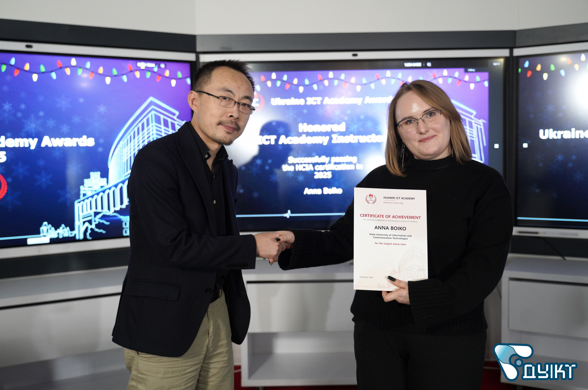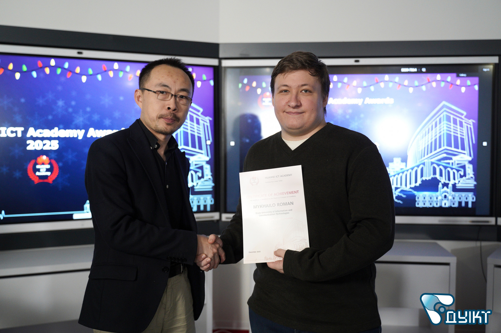 23 грудня 2025 року відбулася знакова подія для Державного університету інформаційно-комунікаційних технологій. Делегація ДУІКТ взяла участь в урочистій церемонії Best Ukraine ICT Academy Awards 2025, організованій компанією Huawei Україна, у межах якої було підбито підсумки співпраці за 2025 рік та окреслено пріоритетні напрями спільної роботи на 2026 рік.