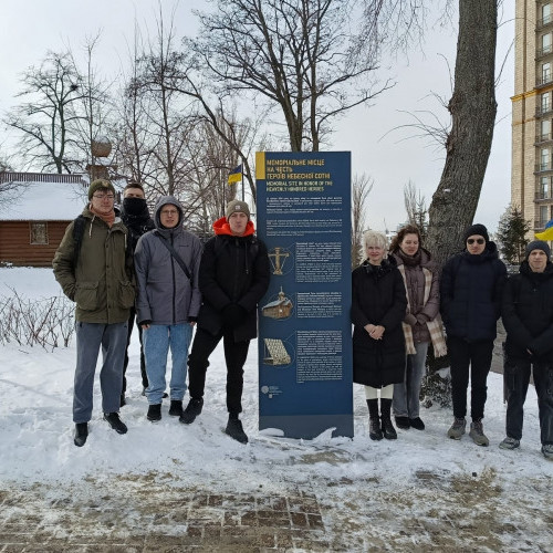 Студентська молодь відвідала меморіал Героїв Небесної Сотні, де поклала квіти та вшанувала загиблих хвилиною мовчання. У щирій і зосередженій атмосфері учасники заходу згадали трагічні події зими 2014 року та висловили вдячність тим, хто став символом незламності українського народу.