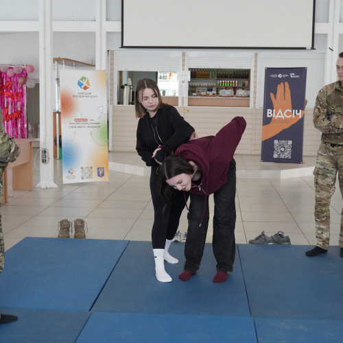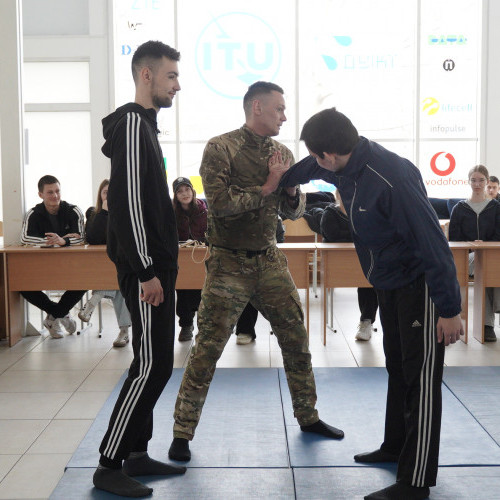 У межах проєкту для здобувачів вищої освіти було організовано навчальні заняття із самооборони за сприянням ОШБ "Лють". Досвідчені тренери з тренінгового центру Головного управління Національної поліції у м. Києві навчали студентів опановувати базові техніки самозахисту, а також відпрацьовували алгоритми дій у кризових ситуаціях, і тим самим розвивали впевненість у власних силах і навички швидкого реагування. Окрім цього, учасникам продемонстрували основи домедичної допомоги, зокрема правильне накладання джгутів для зупинки кровотечі.