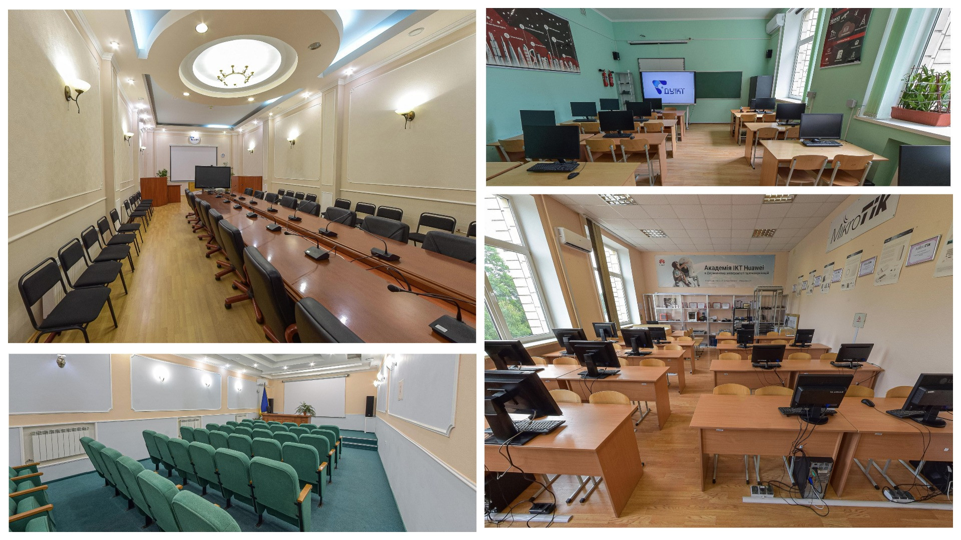 Всі класи, що використовується для проведення лекцій, семінарів, практичних занять, захистів курсових і кваліфікаційних робіт, а також для організації наукових заходів і тренінгів оснащені інтерактивними дошками, проєкторами, кондиціонерами для створення комфортних умов проведення освітнього процесу.