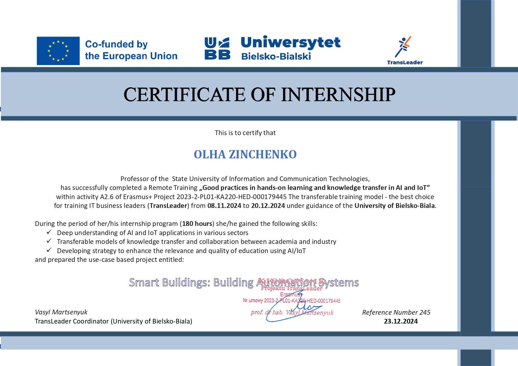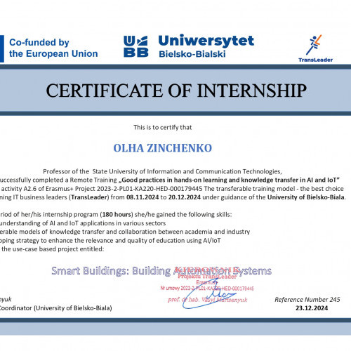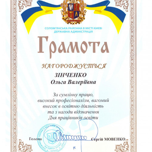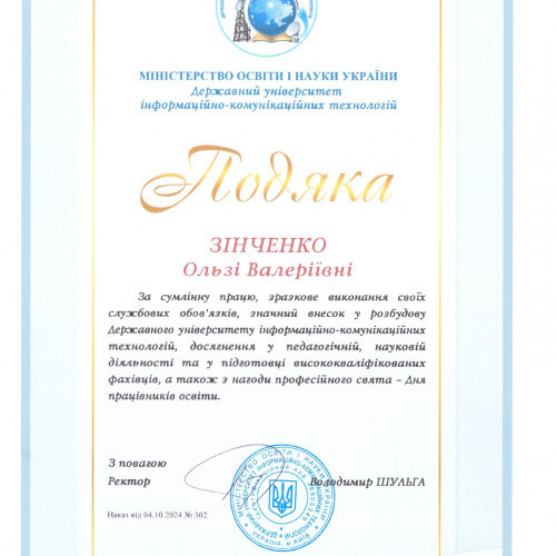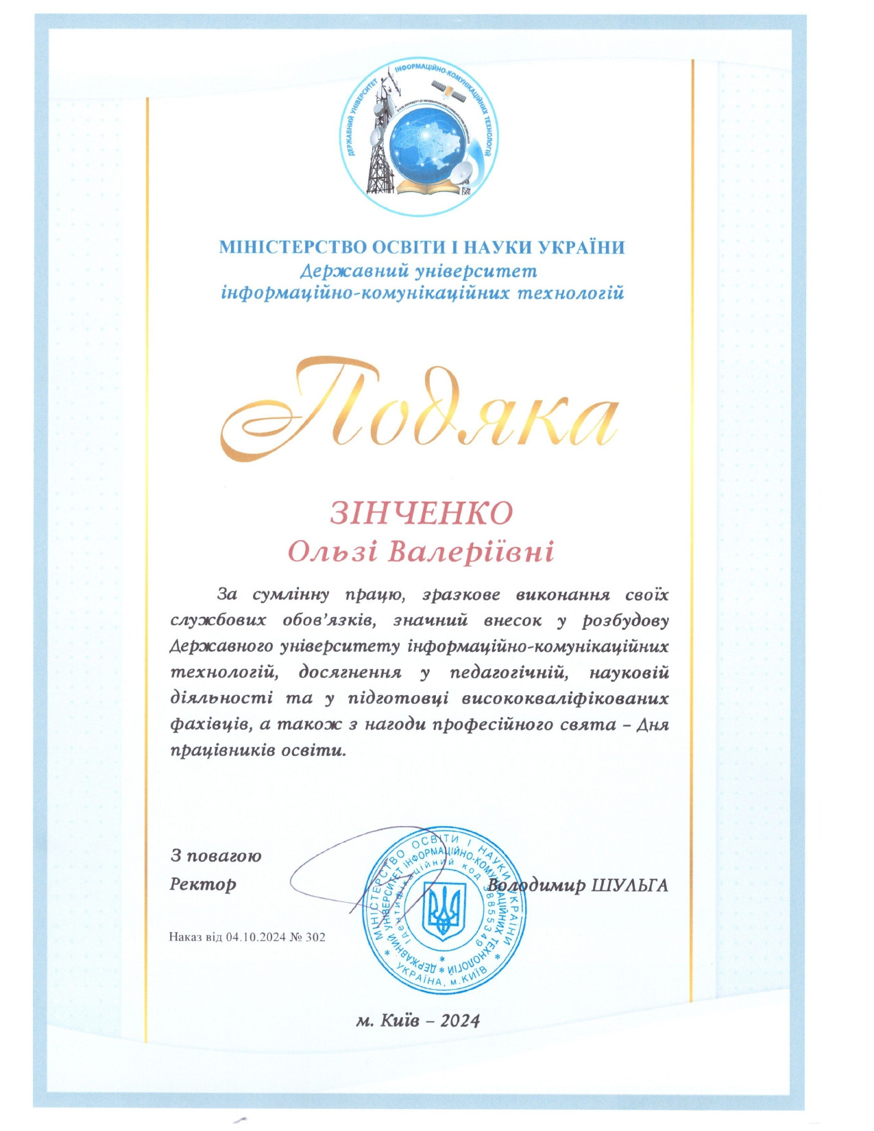 ЗІНЧЕНКО ОЛЬГА ВАЛЕРІЇВНА