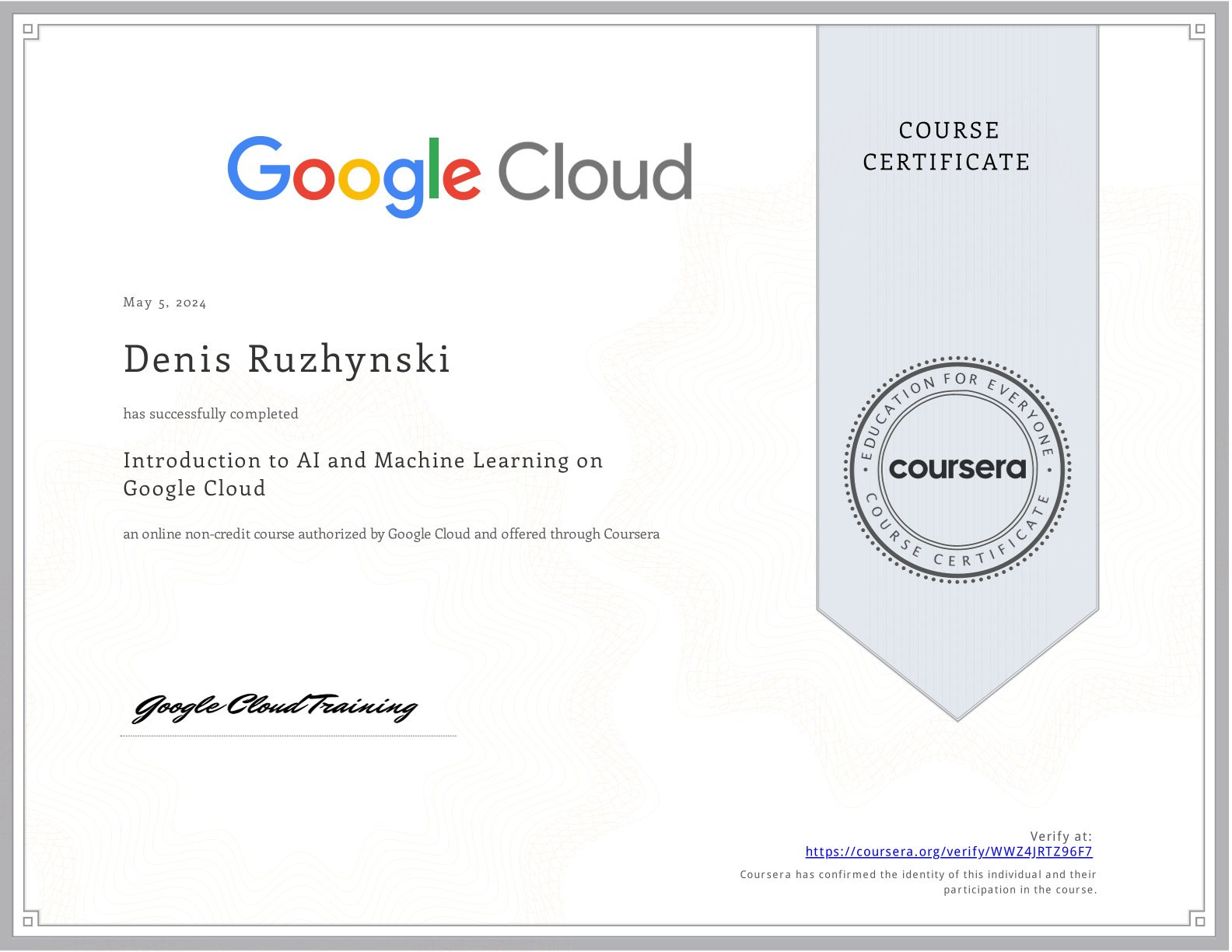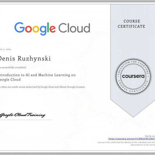 Introduction to AI and Machine Learning on Google Cloud (Google Cloud/Coursera) |