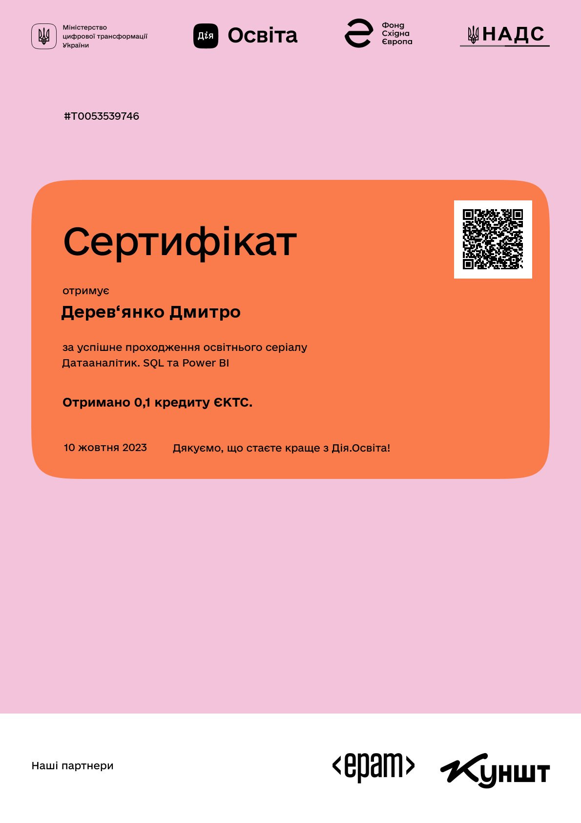 Датааналітик. SQL та Power BI (Дія.Освіта) |