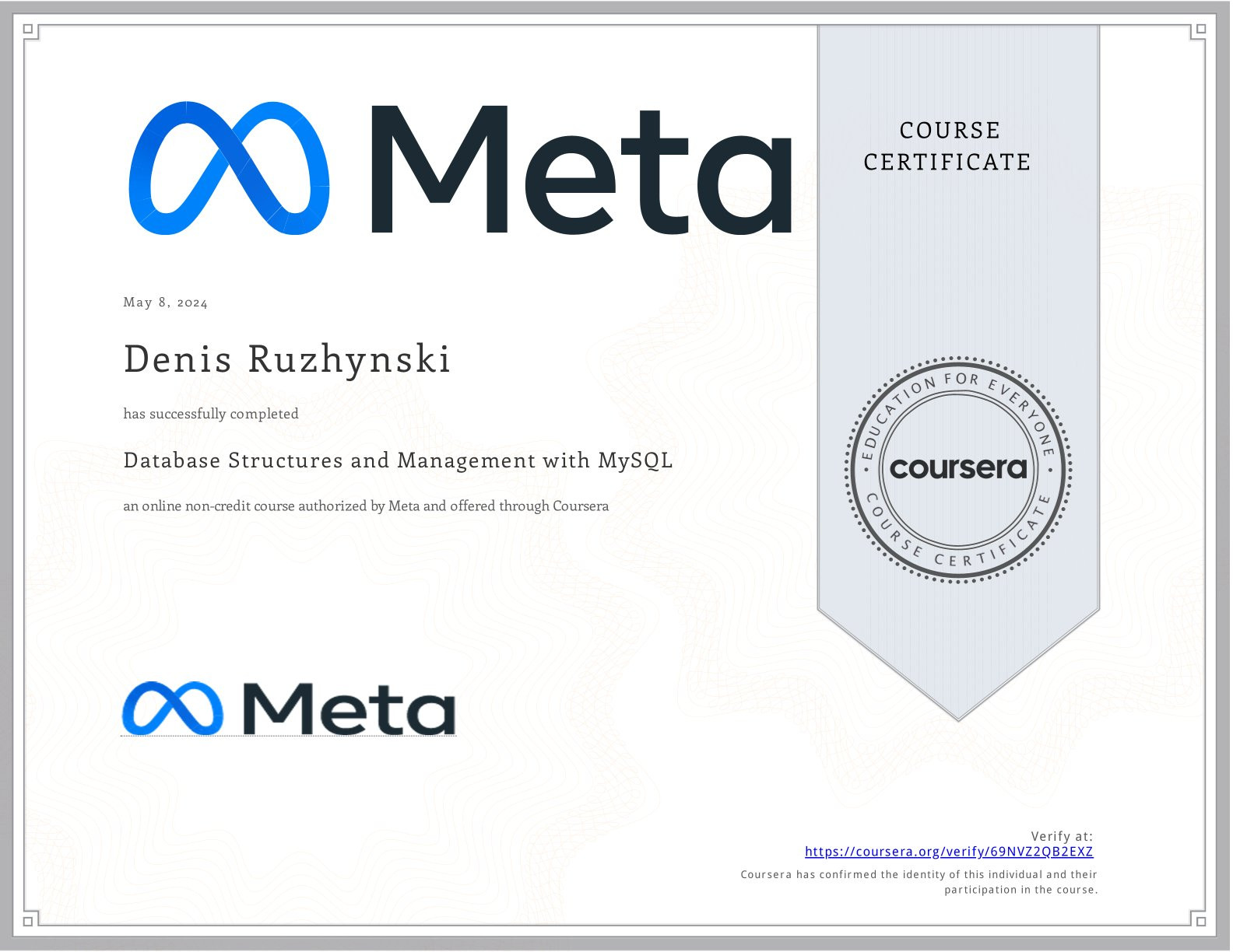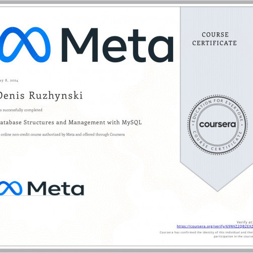 Database Structures and Management with MySQL (Meta/Coursera) |