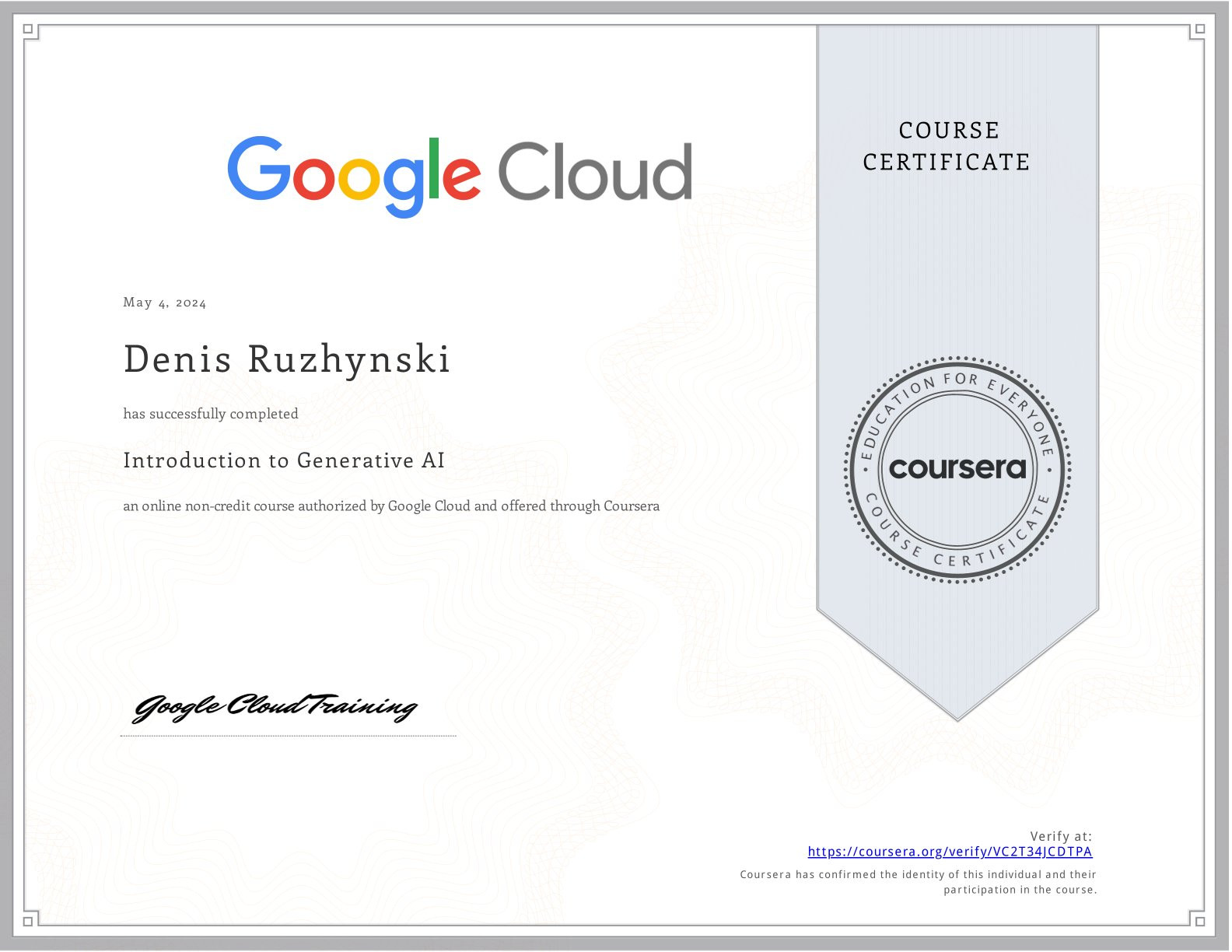 Introduction to Generative AI (Google Cloud/Coursera) |