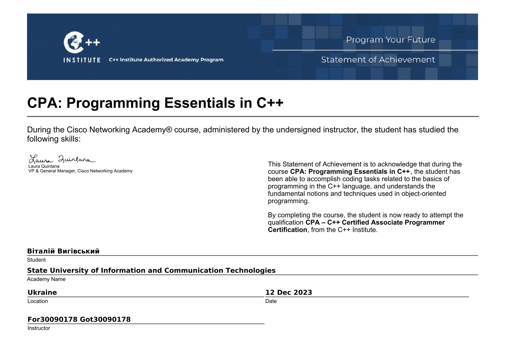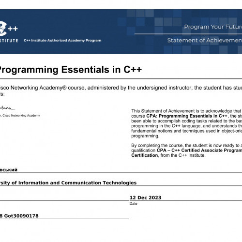 CPA: Programming Essentials in C++ (Cisco Networking Academy) |