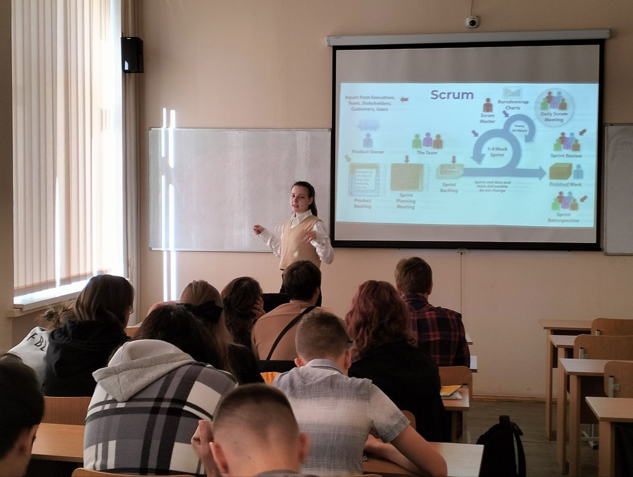 Імітація структури ІТ-компанії з призначенням Scrum-майстра, Product Owner-а та розробників.