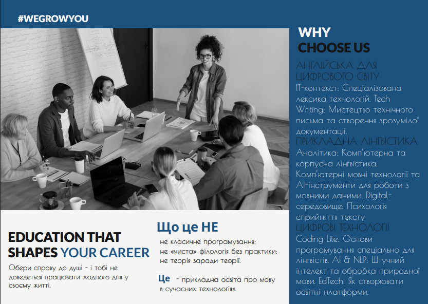 Освітня програма буде цікавою для абітурієнтів, які прагнуть здобути сучасну, затребувану філологічну освіту та побудувати кар’єру в Україні або за кордоном.