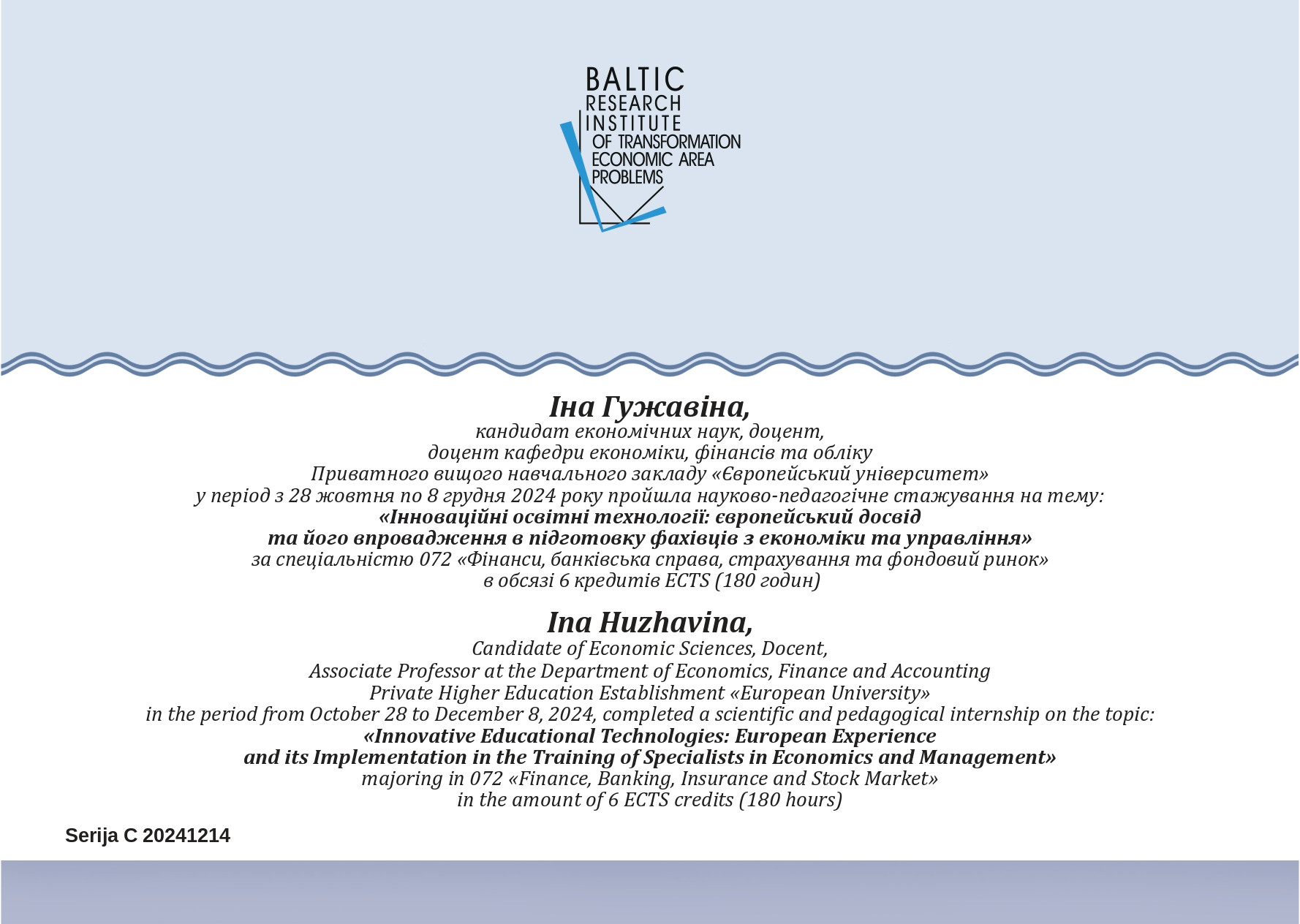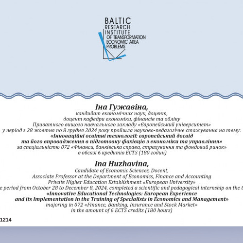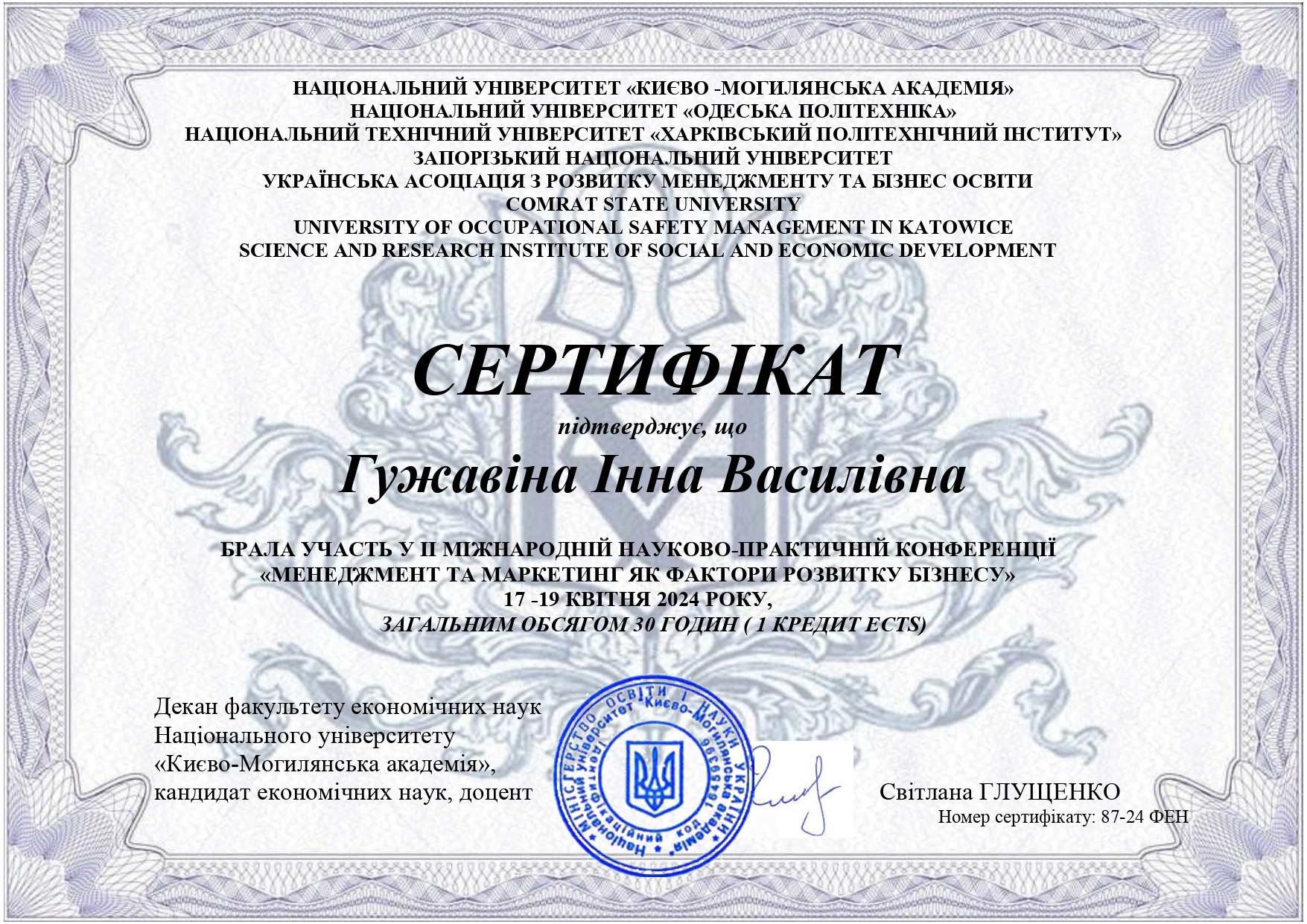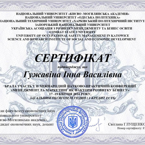 Мартиненко Марина Олександрівна доктор філософії (PhD), доцент кафедри економіки і підприємництва